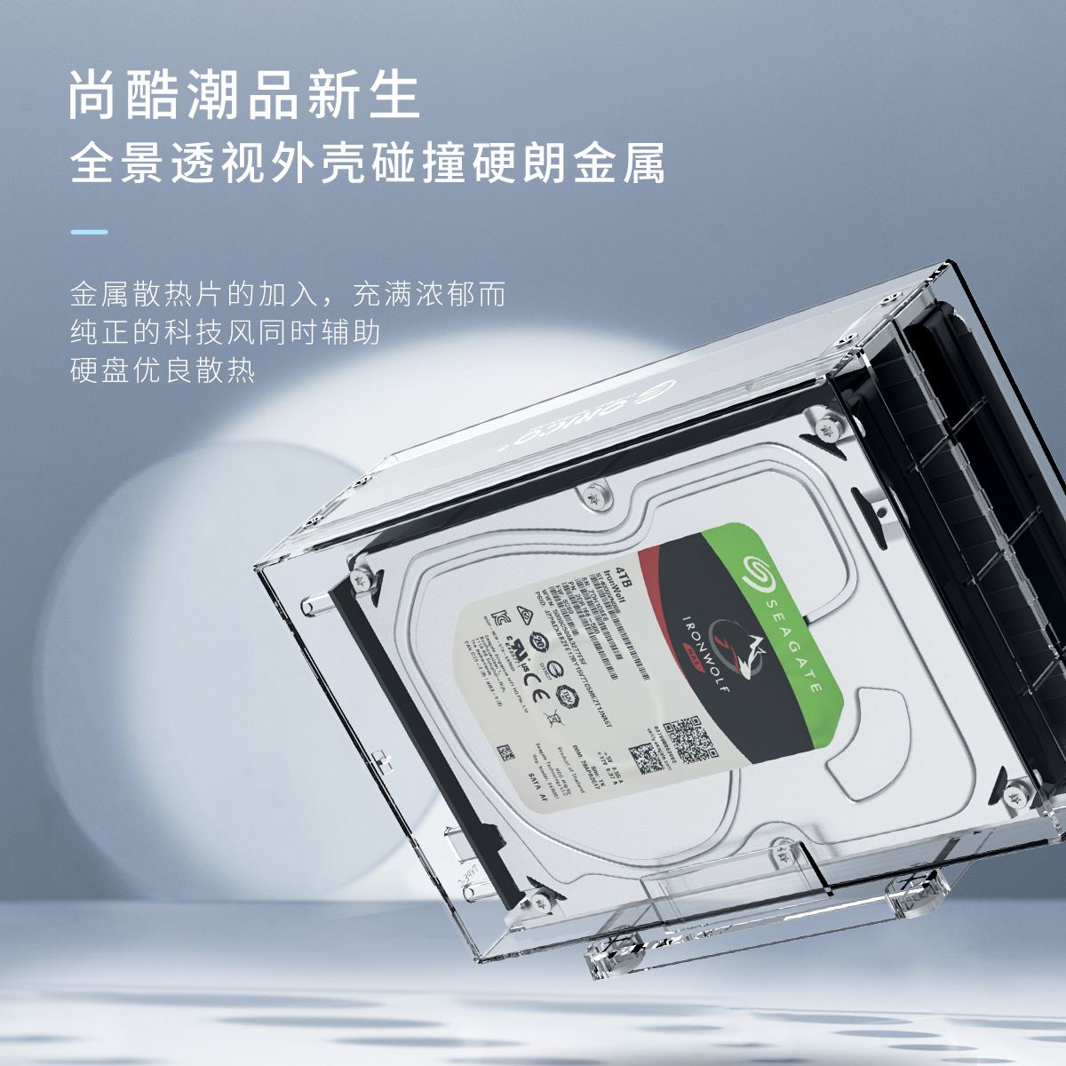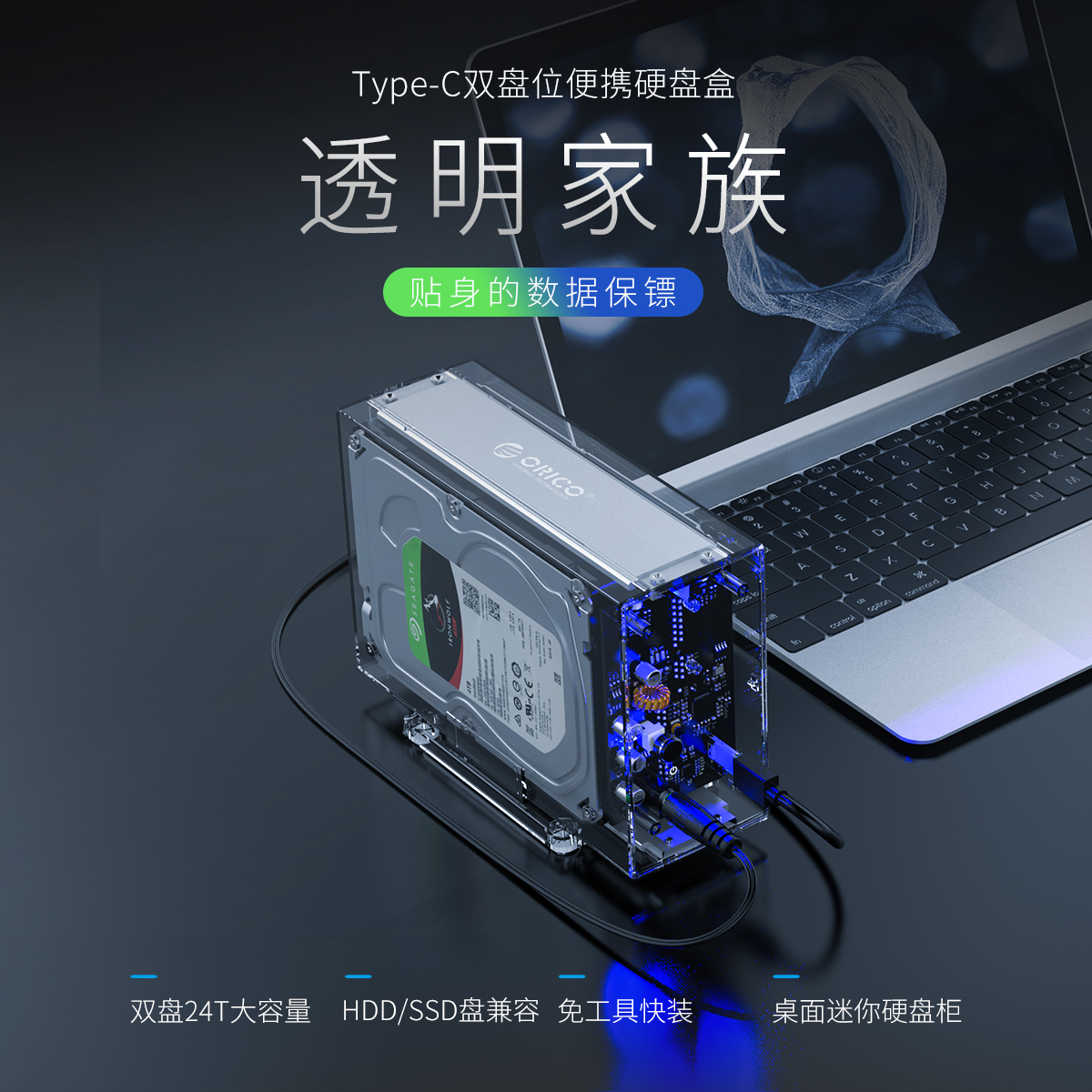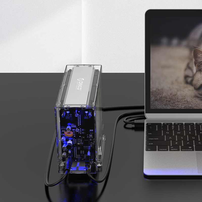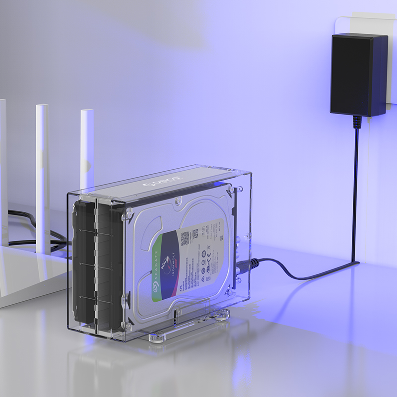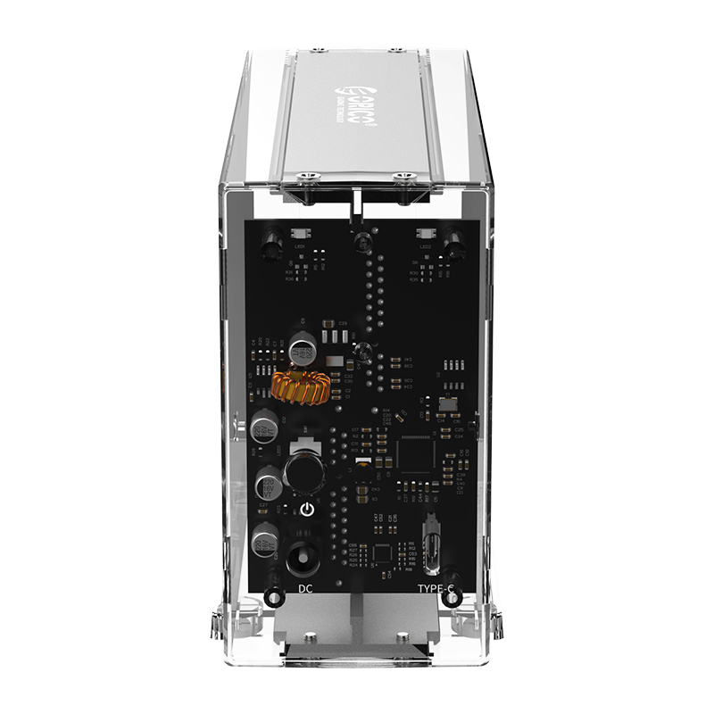 全景透视外壳,尽显透明真芯,双盘24T大容量,免工具快速安装,当你的桌面迷你硬盘柜