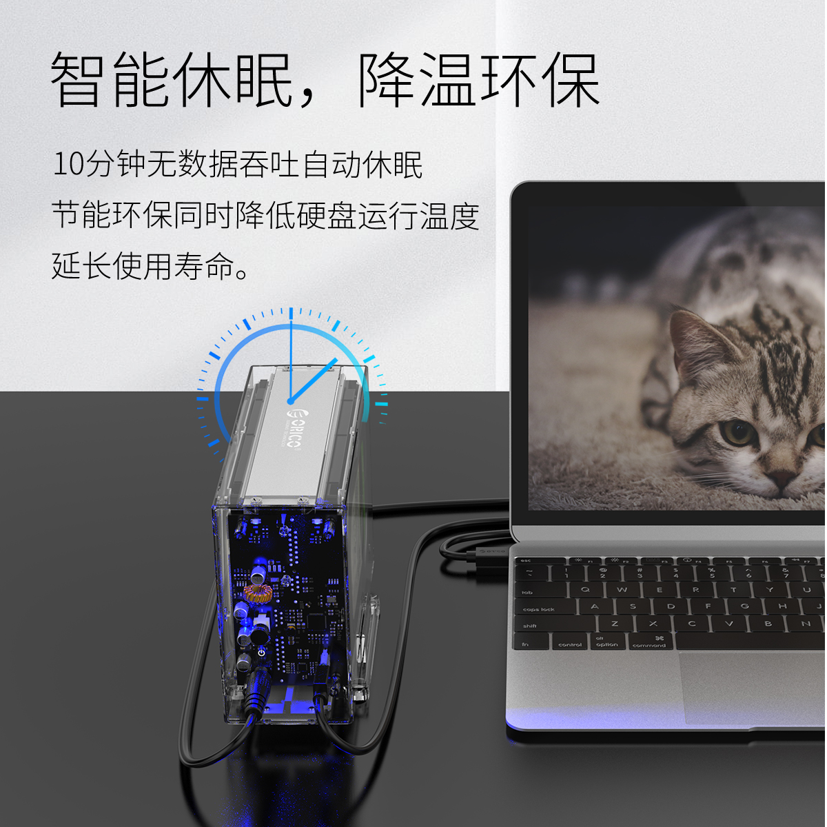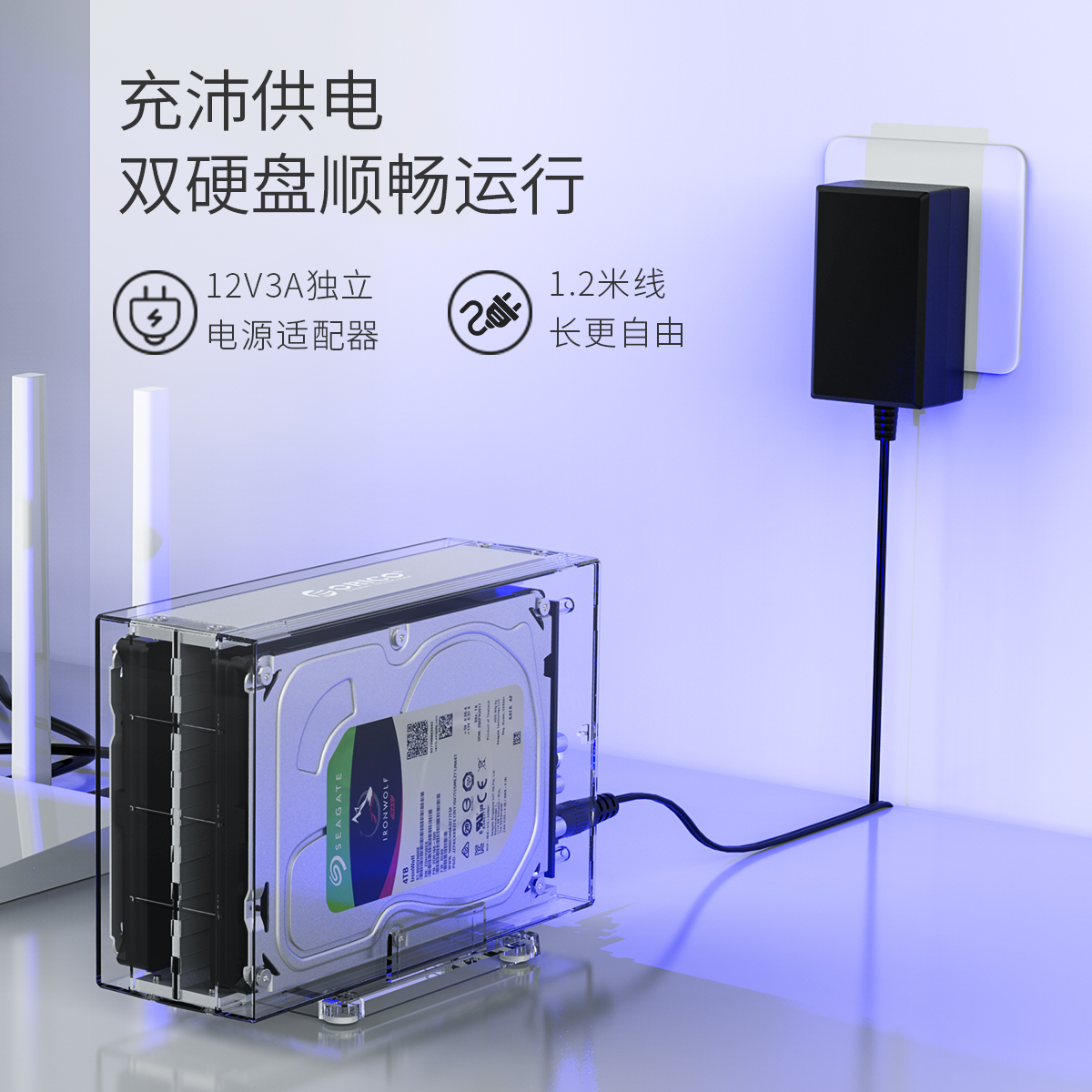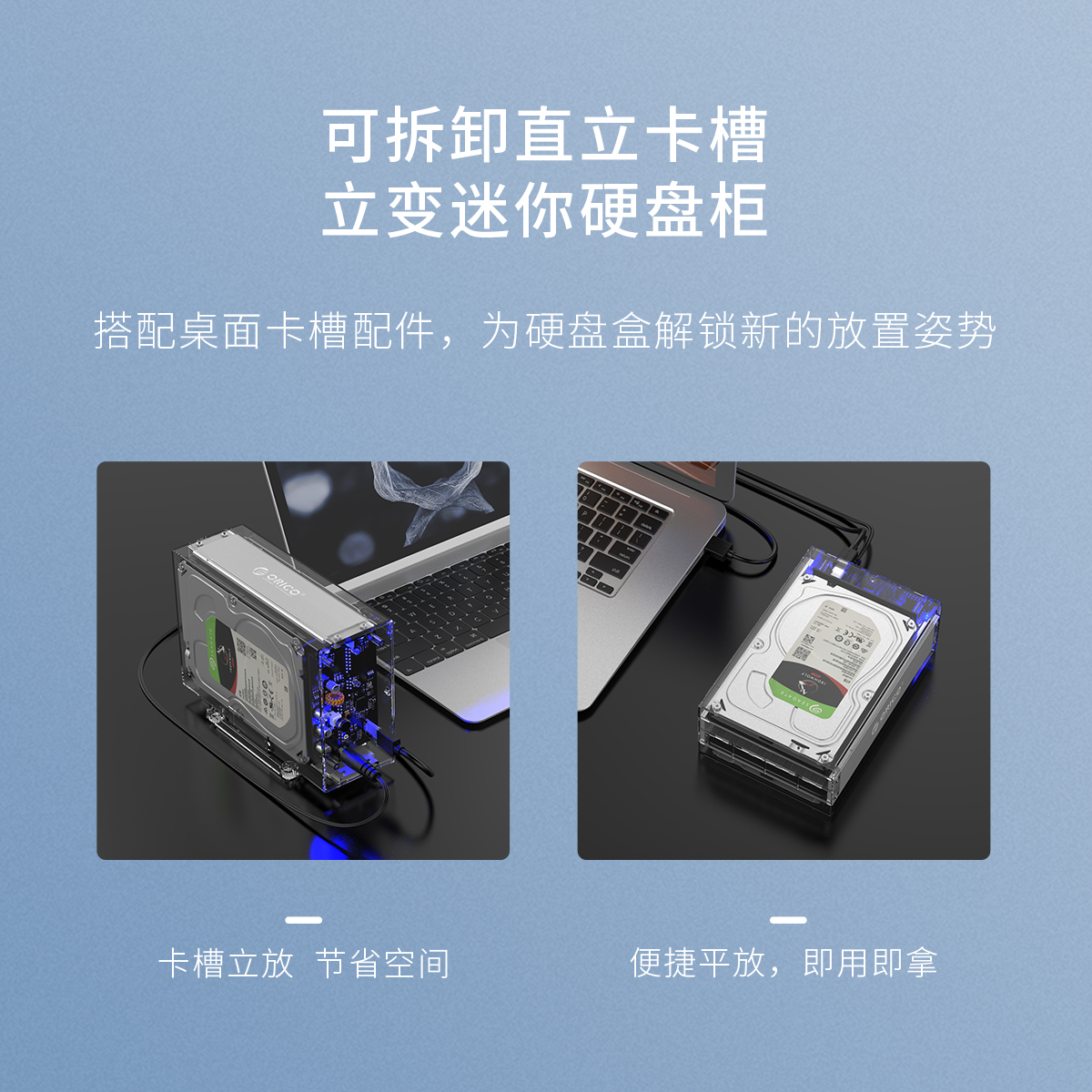 全景透视外壳,尽显透明真芯,双盘24T大容量,免工具快速安装,当你的桌面迷你硬盘柜