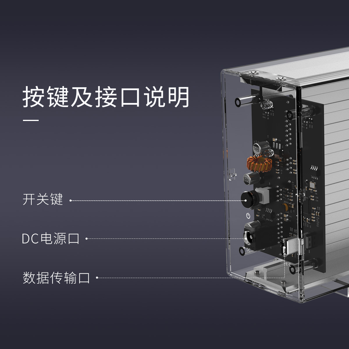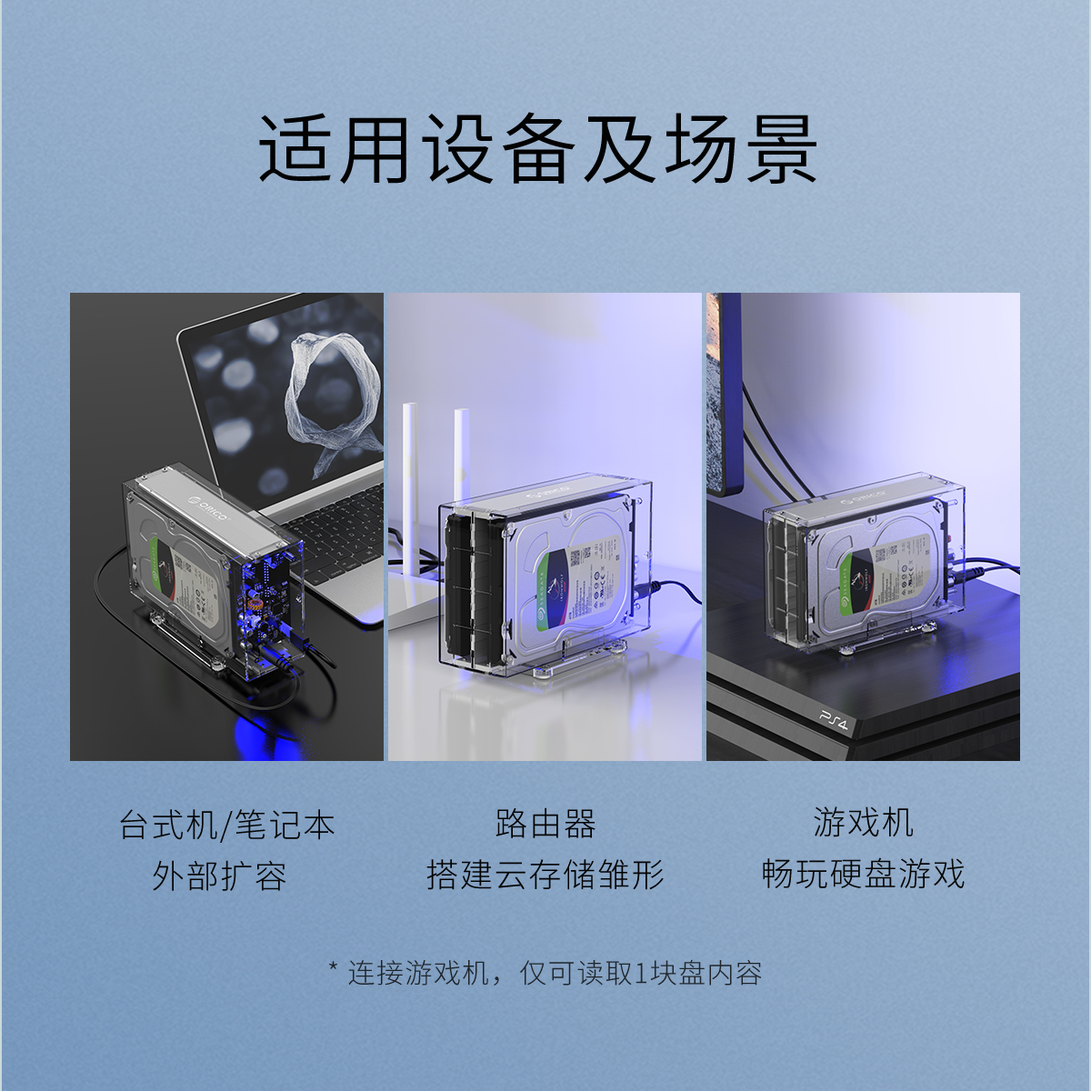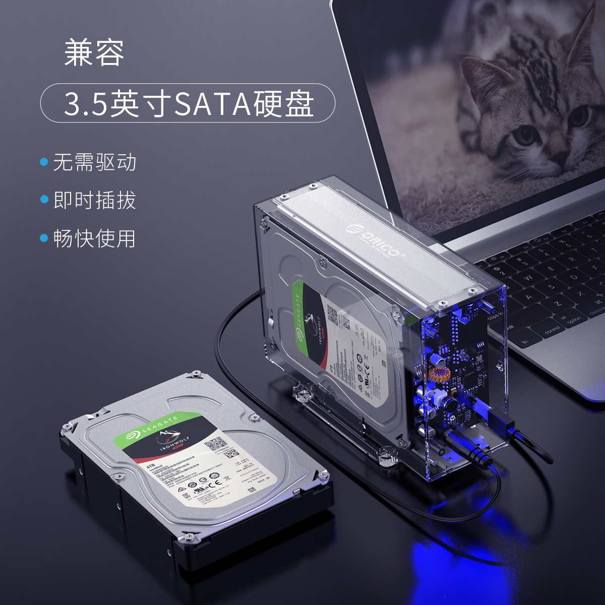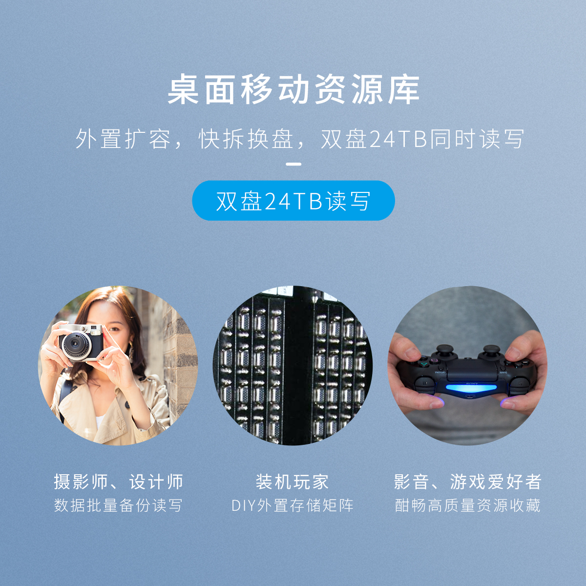 全景透视外壳,尽显透明真芯,双盘24T大容量,免工具快速安装,当你的桌面迷你硬盘柜