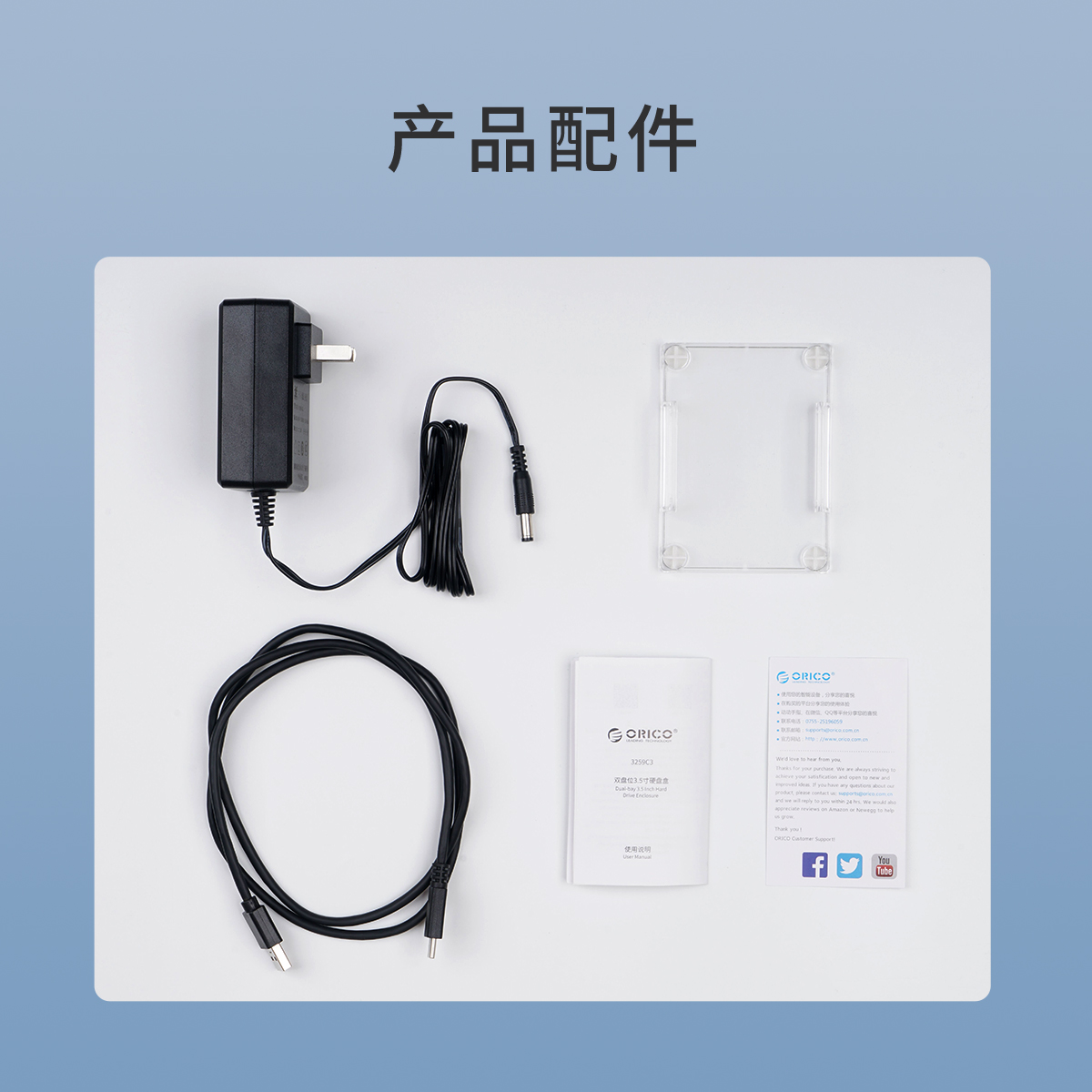 3.5英寸Type-C双盘位透明硬盘盒
