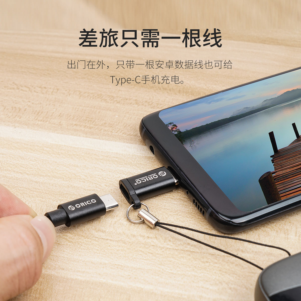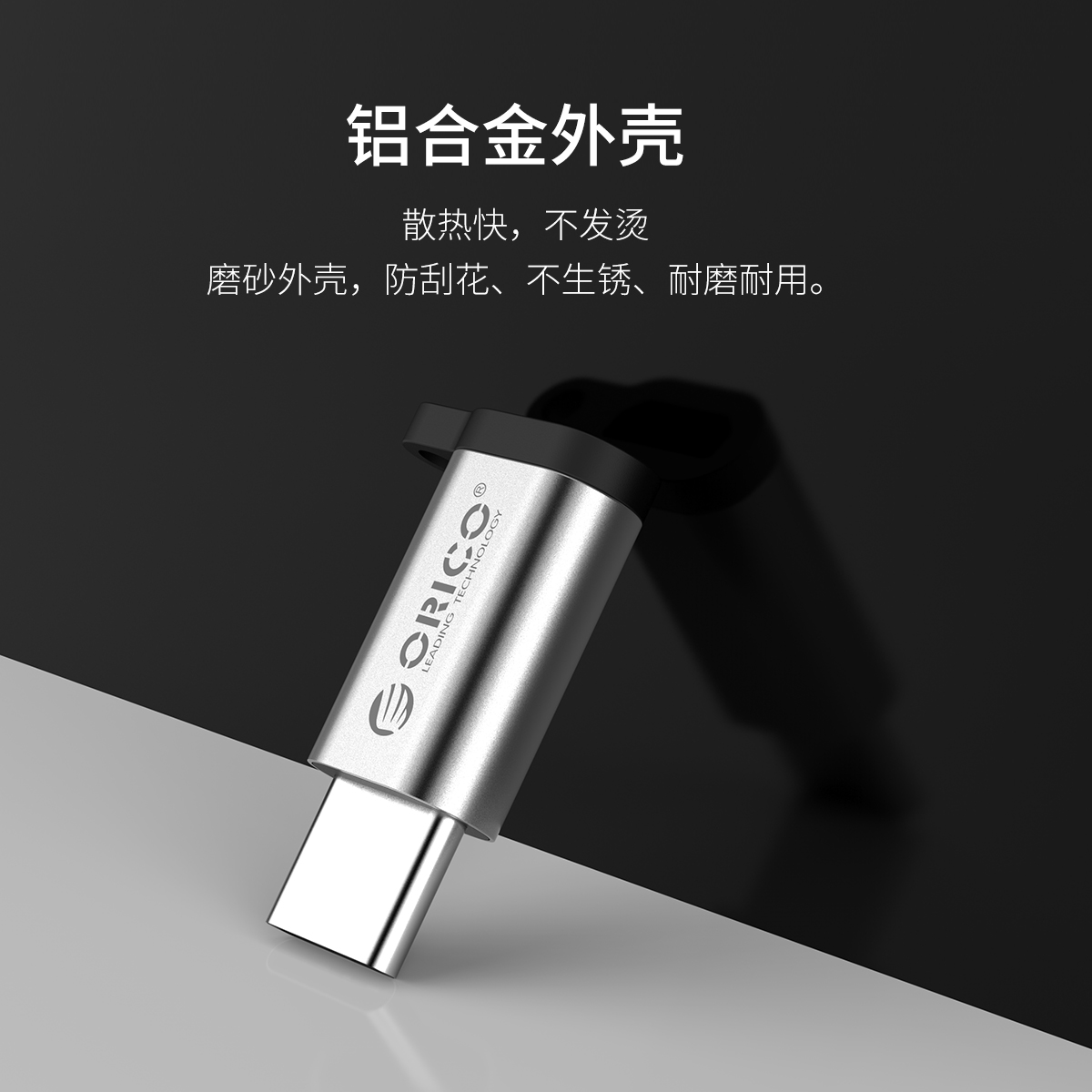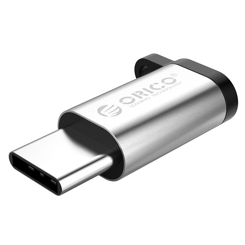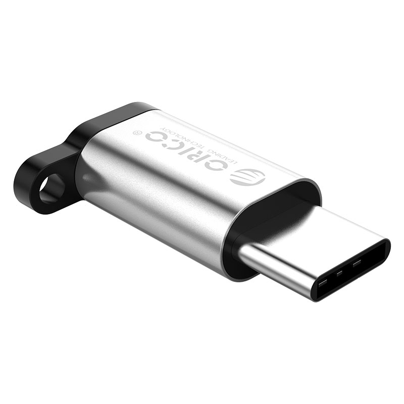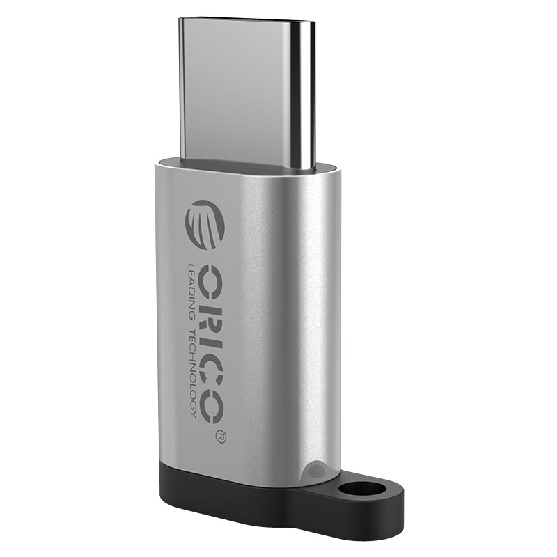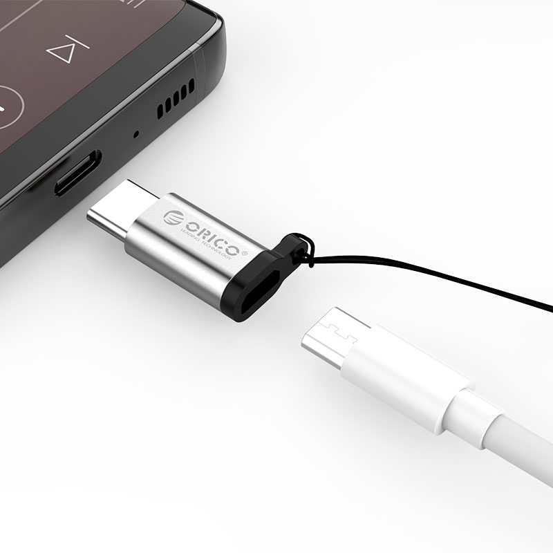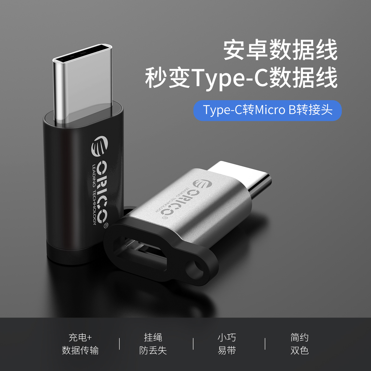 银色Type-c转Micro B转接头,充电+传输,挂绳防丢失,小巧易带,简约银色