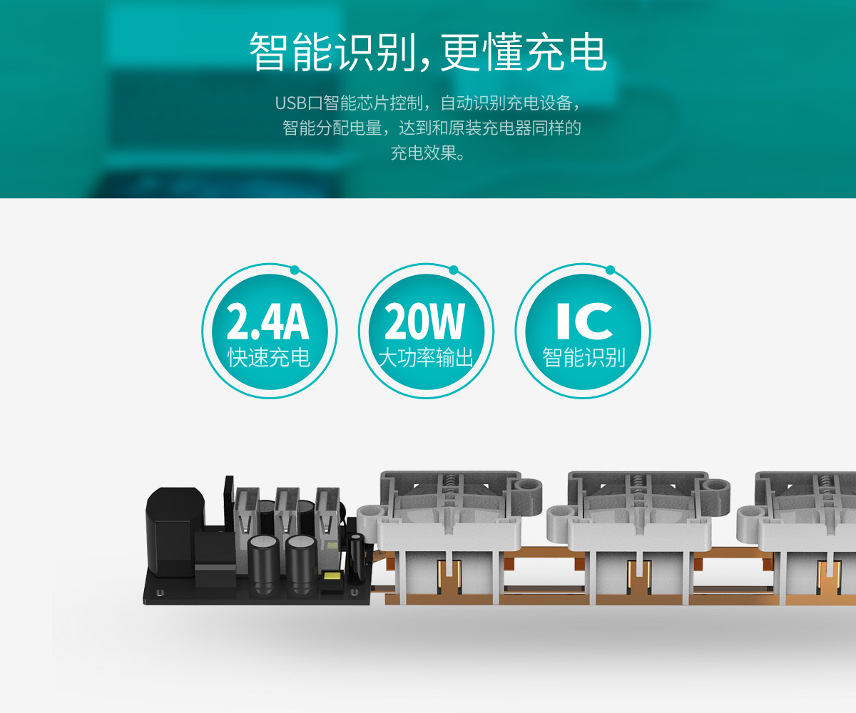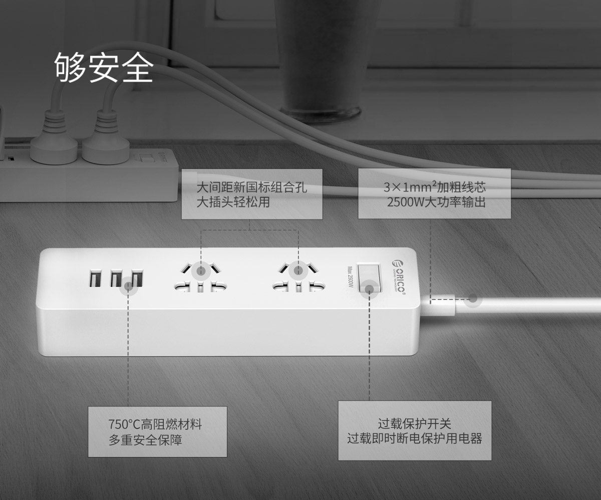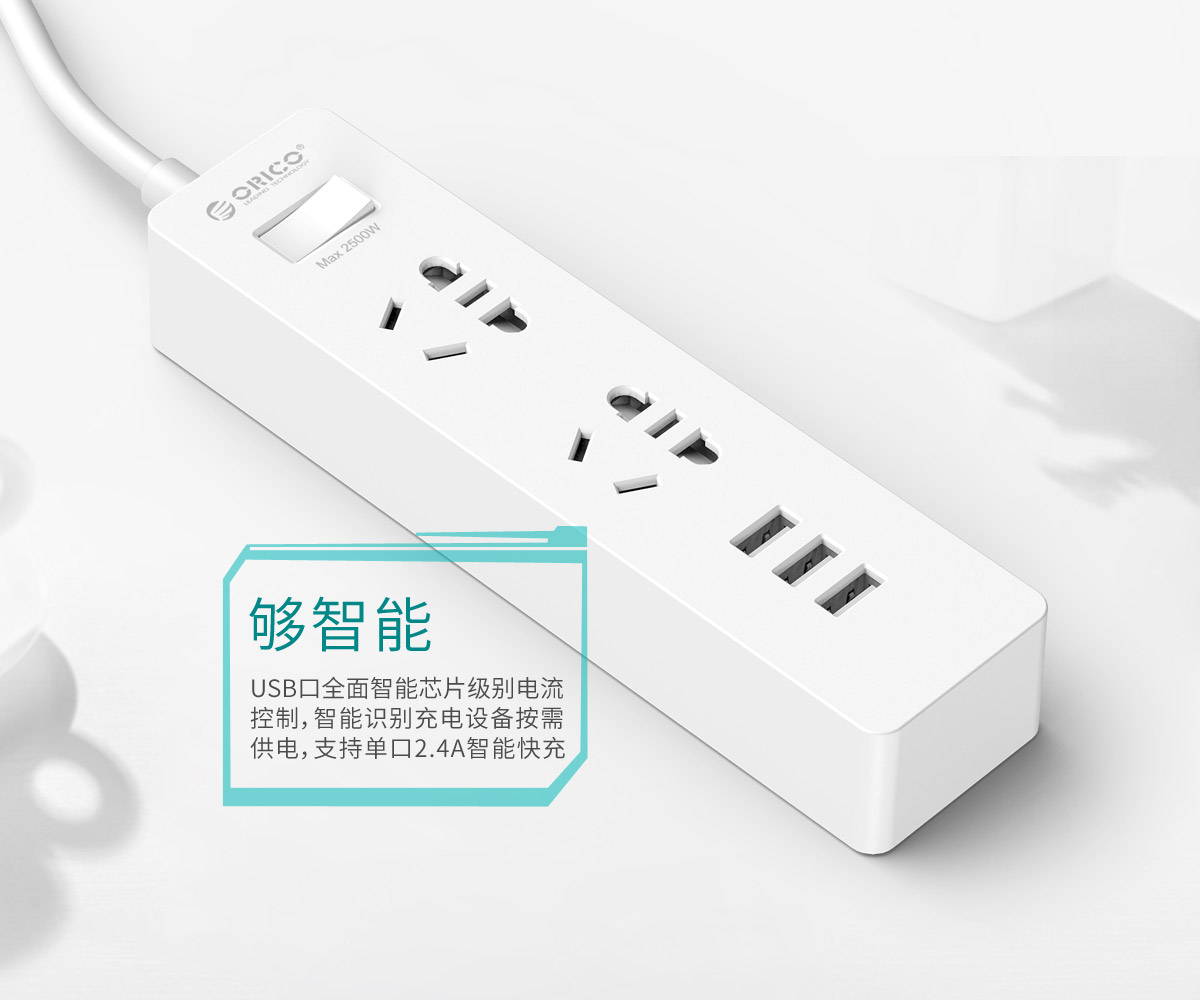 新国标便携桌面式排插,单口支持2.4A,2500W大功率