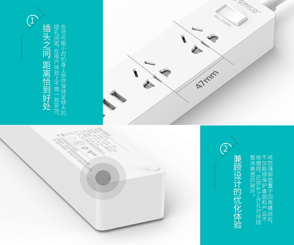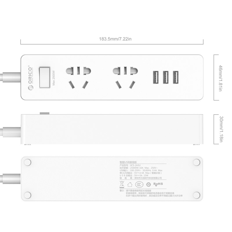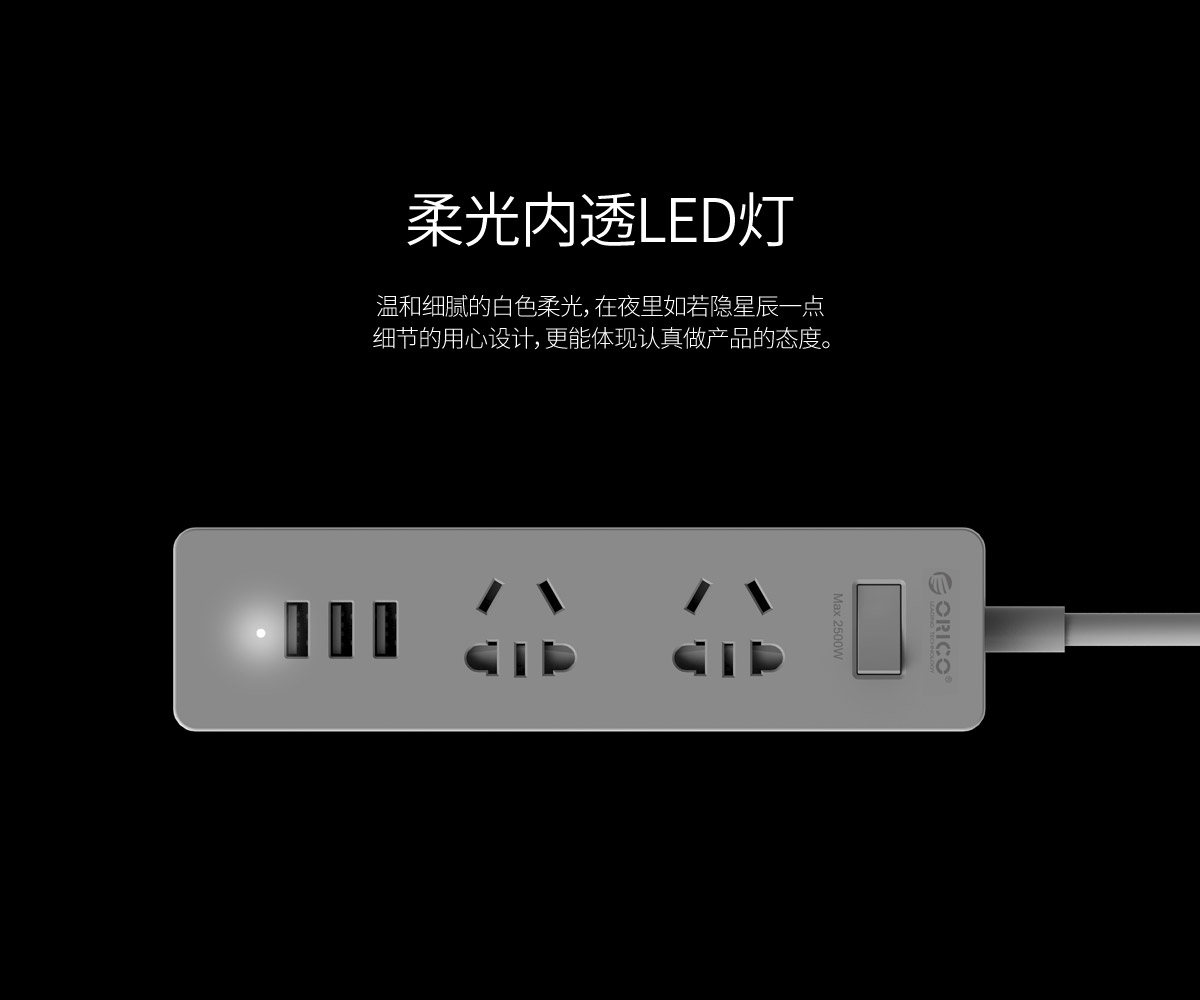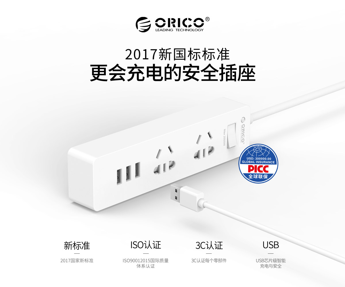 新国标便携桌面式排插,单口支持2.4A,2500W大功率