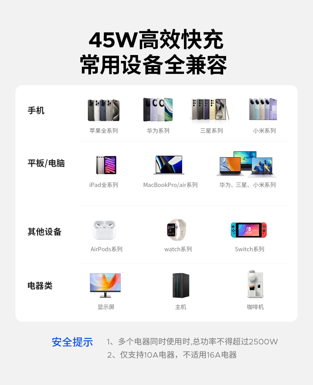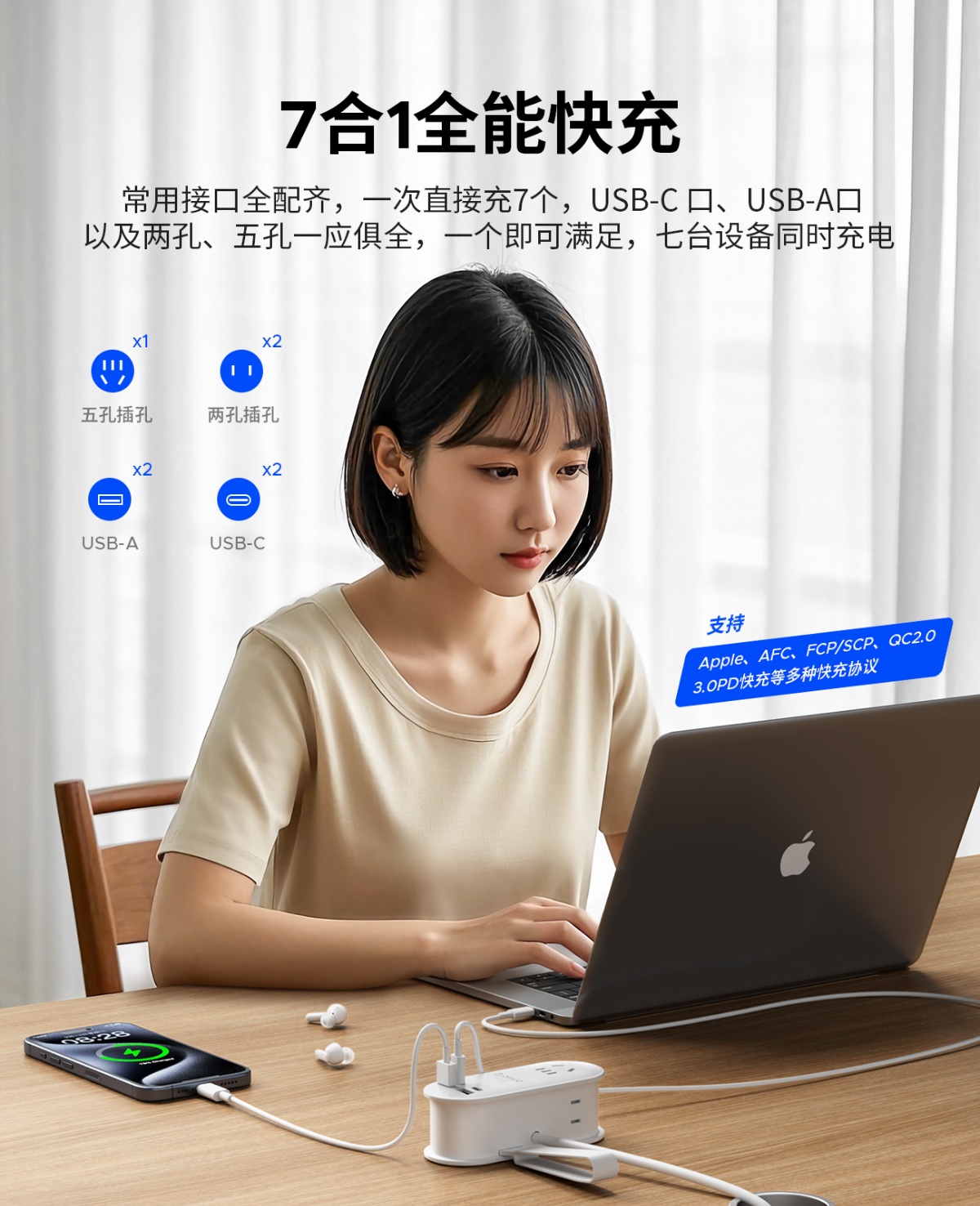 3个AC,2个USB-A,2个USB-C