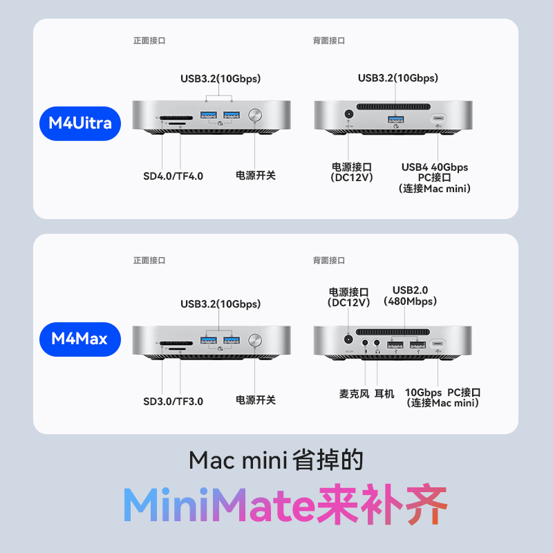 USB-A 3.2*2(10Gbps)、USB-A 2.0*2(480Mbps)、3.5mm耳机*1、3.5mm麦克风*1、TF/SD3.0*2