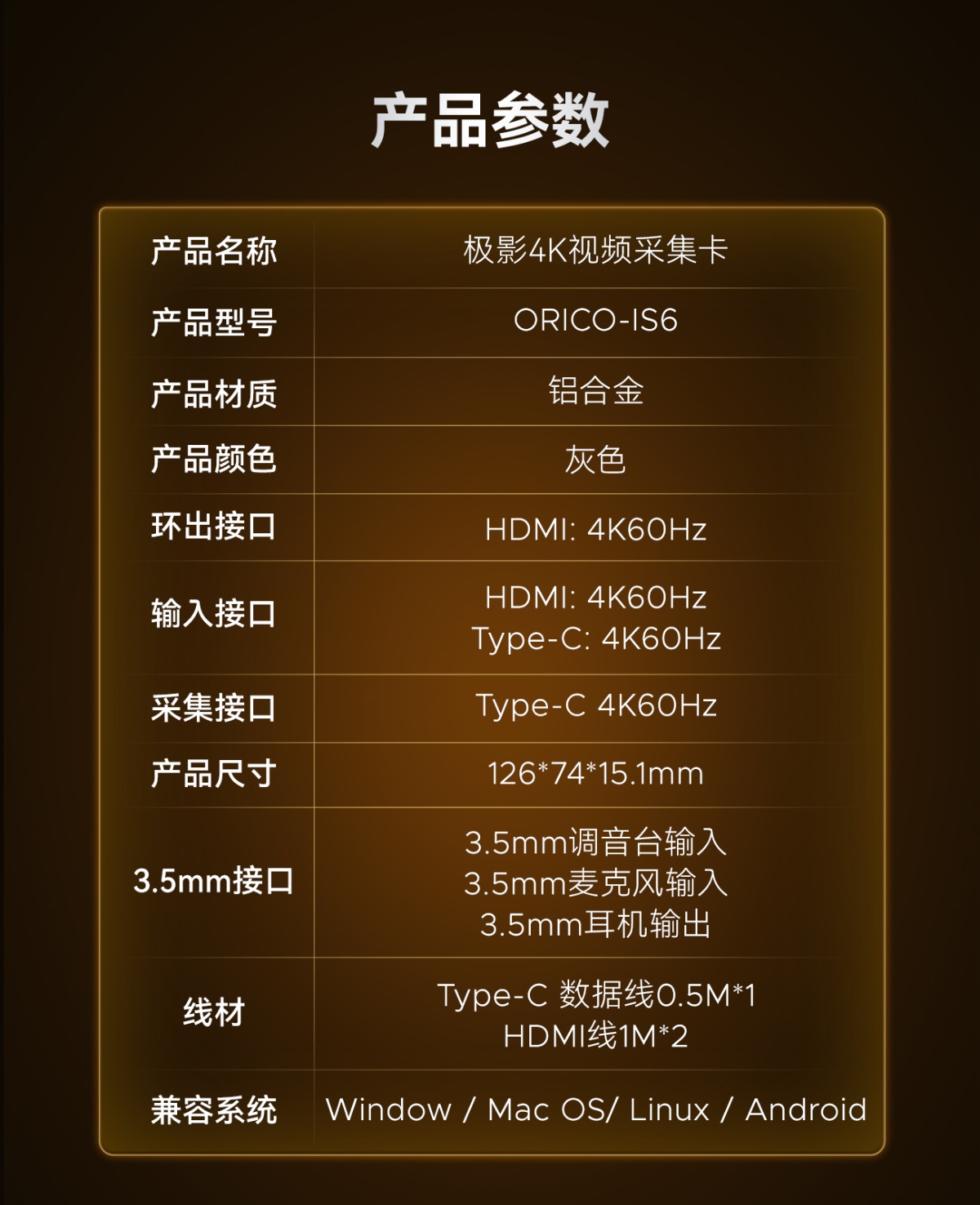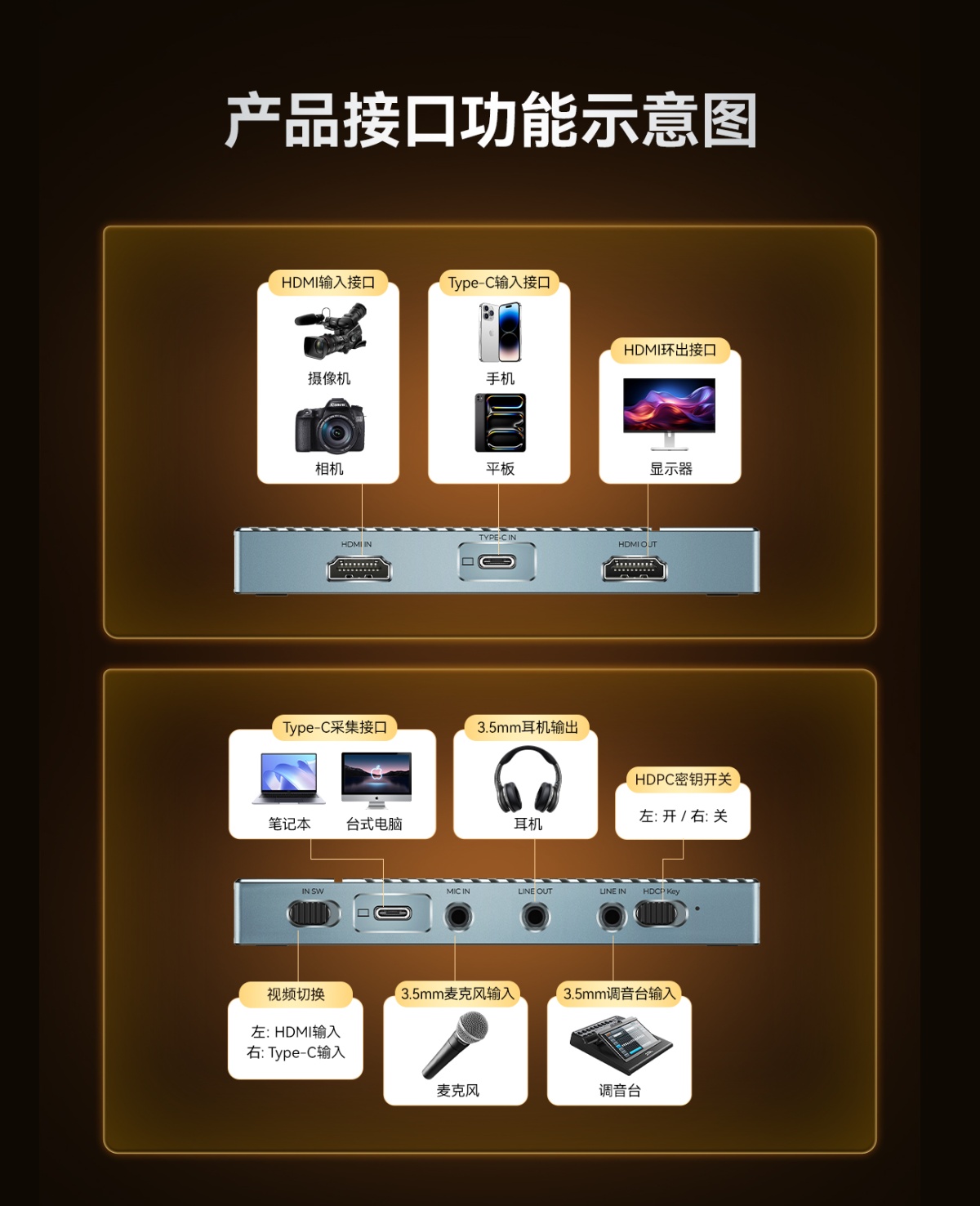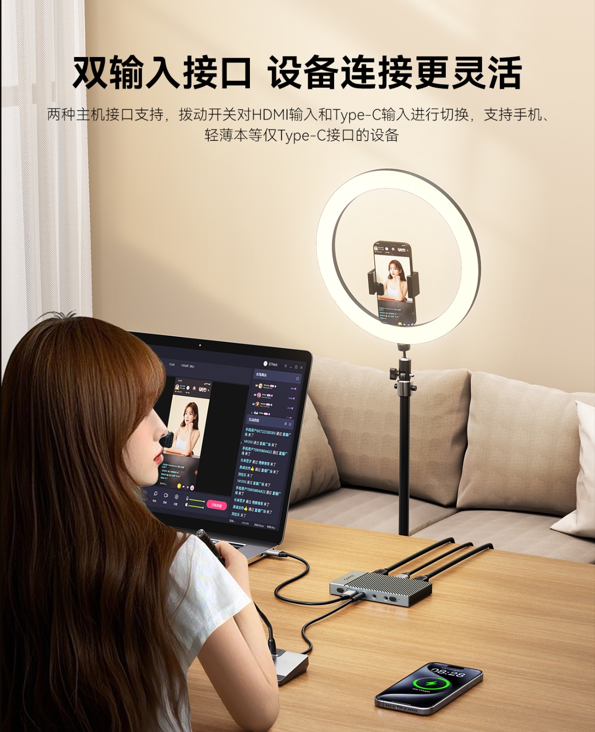 HDMI:4K60Hz;Type-C:4K60Hz;双路输入(拨片开关控制)