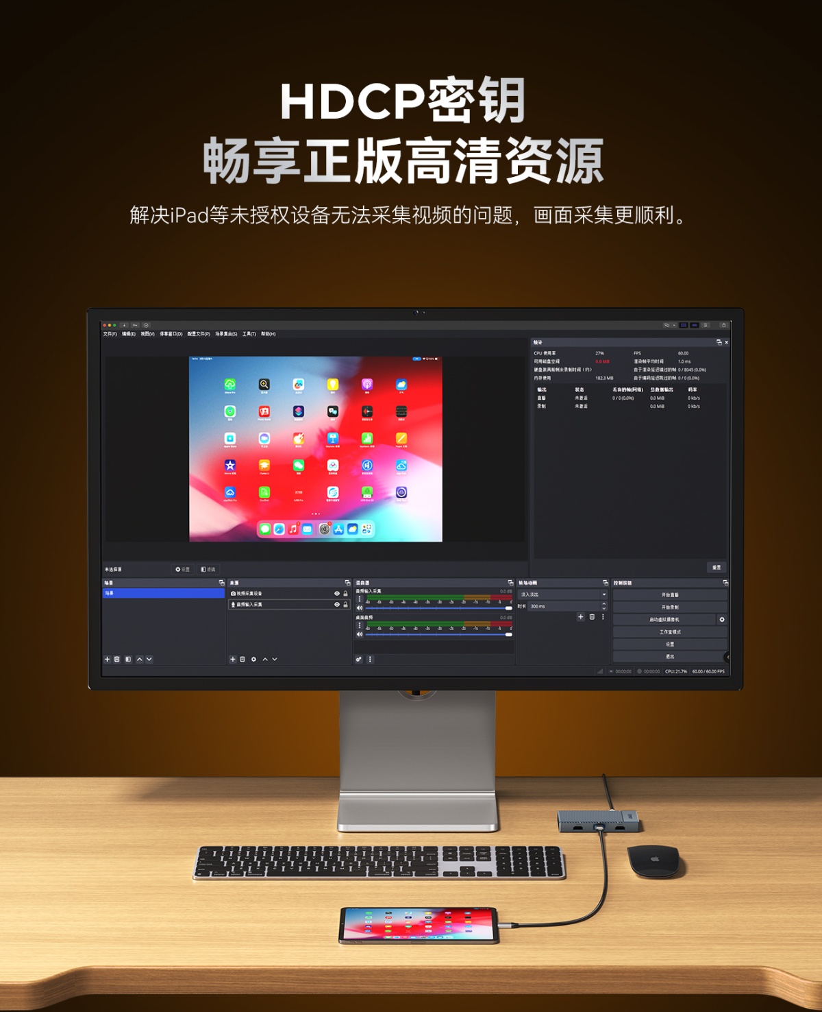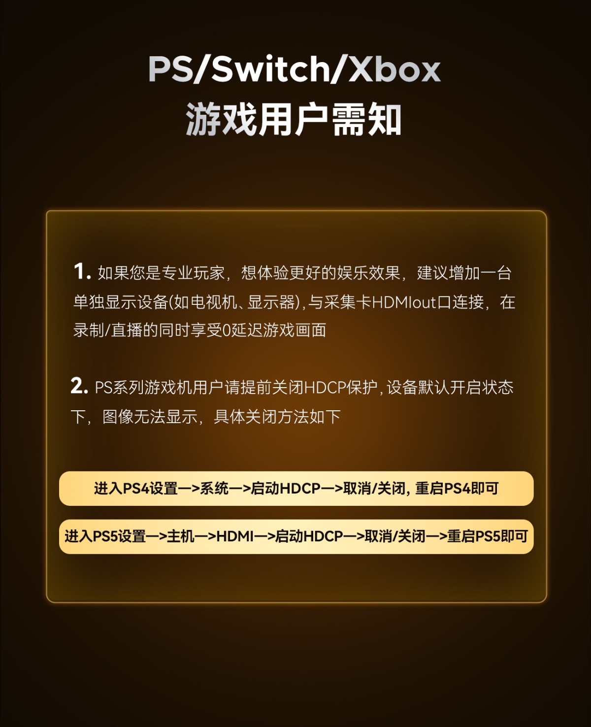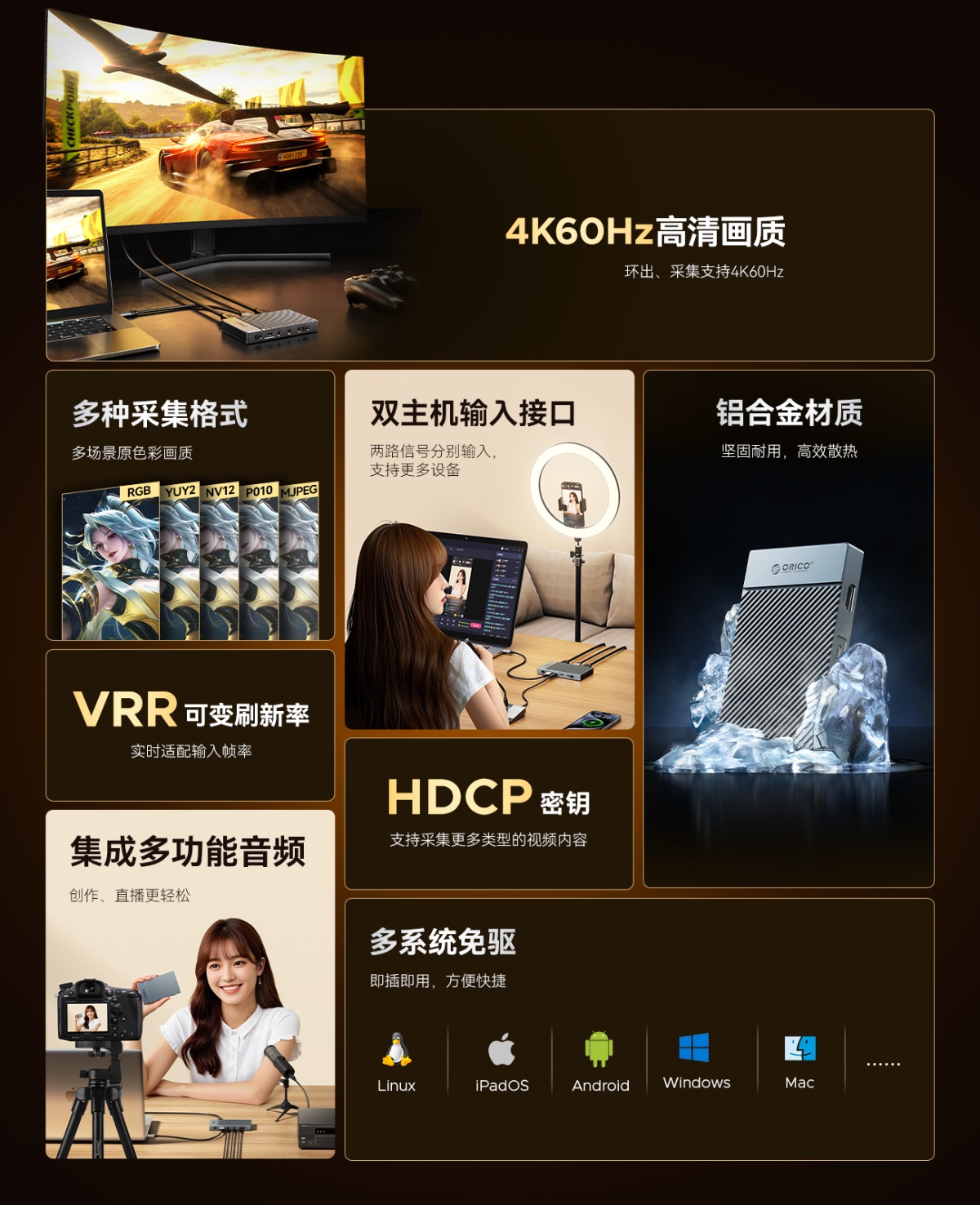 HDMI:4K60Hz;Type-C:4K60Hz;双路输入(拨片开关控制)