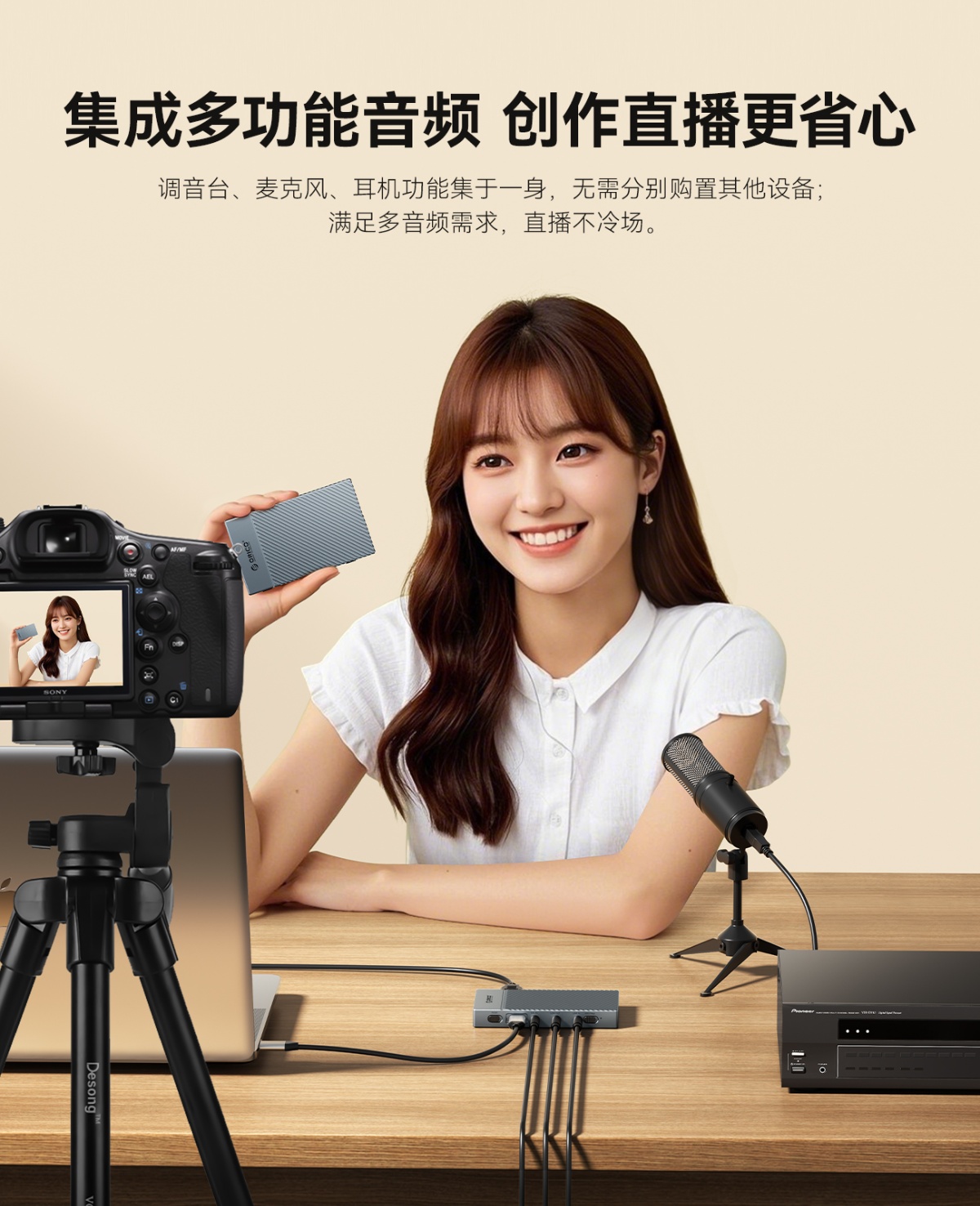 3.5mm调音台输入;3.5mm麦克风输入;3.5mm耳机输出