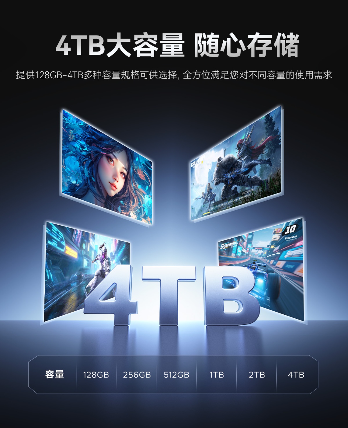 128GB;256GB;512GB;1TB;2TB;4TB