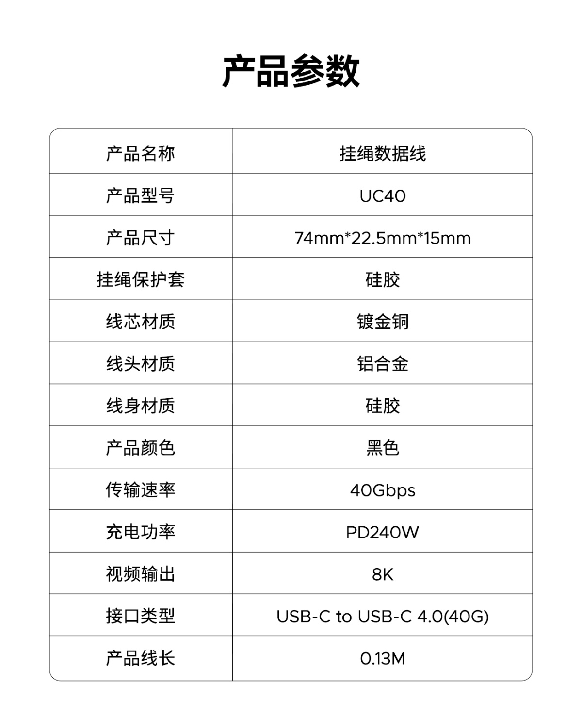 40 Gbps TypeC挂绳数据线