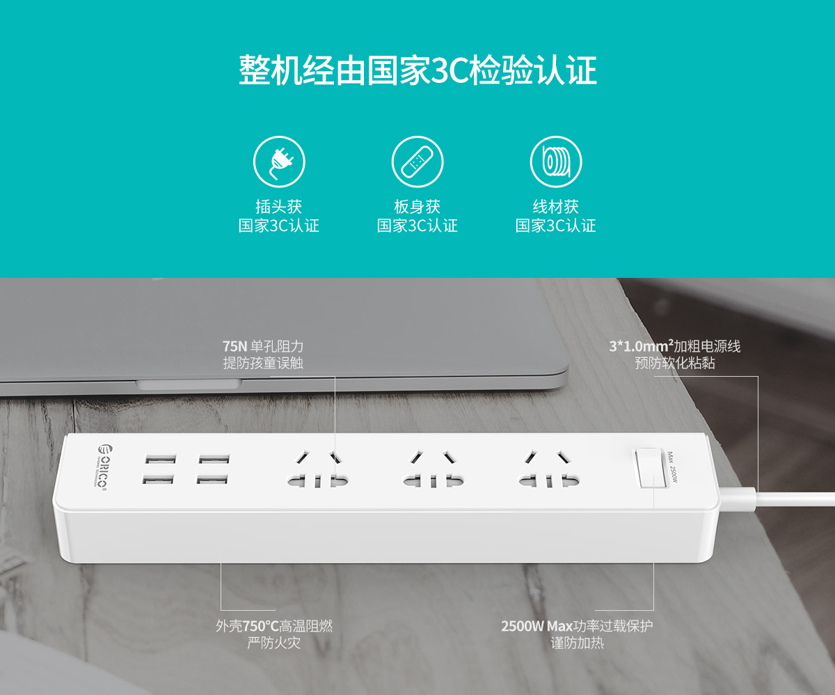 新国标便携桌面式排插,办公智能排插,高温环保材料,底座硅胶防滑