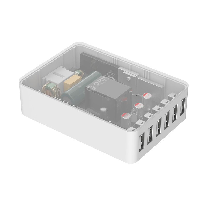 50W大功率输出以确保六台设备快速充电,单口可达2.4A充足电流输出,轻松实现多设备同时充电,要多快就有多快。