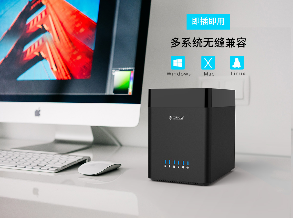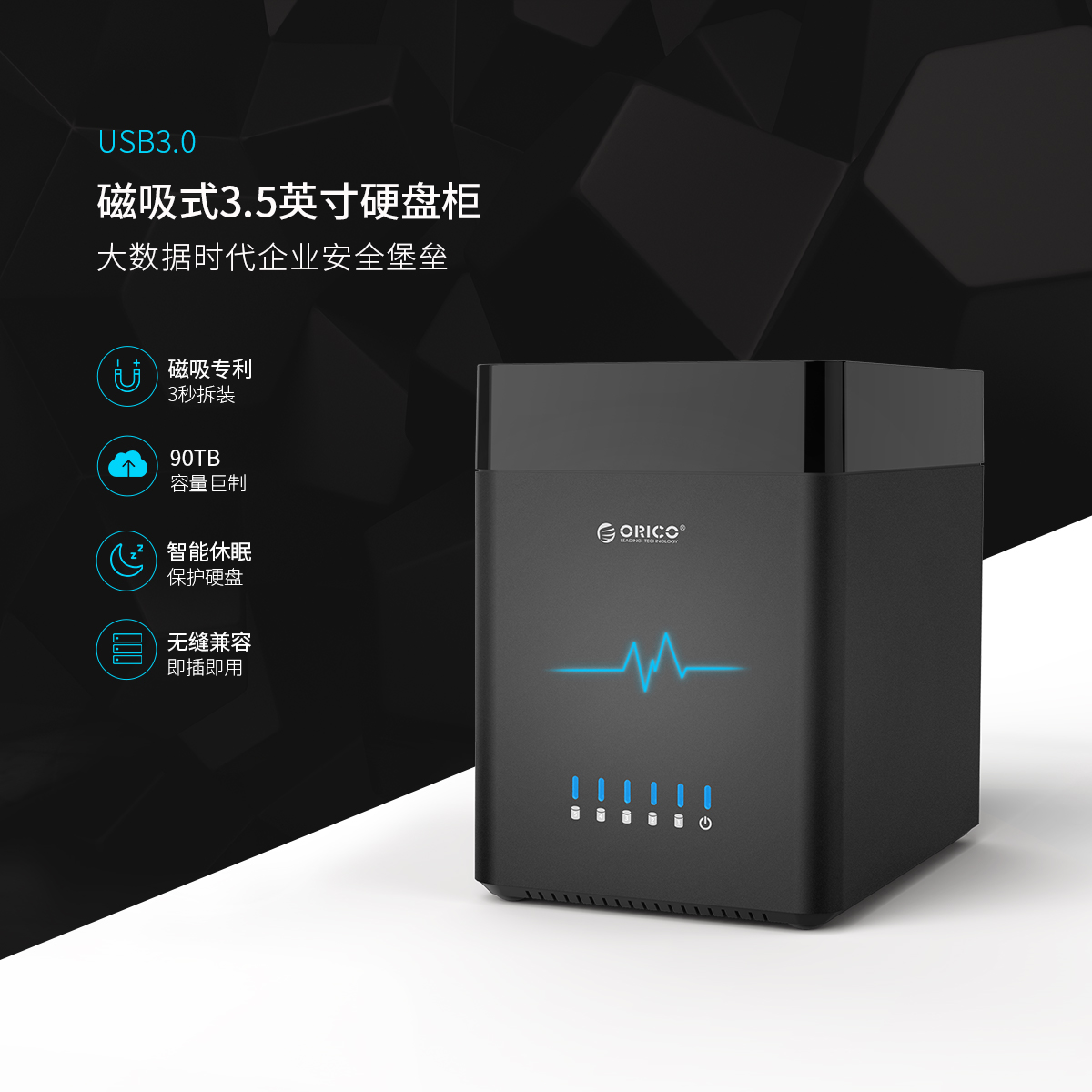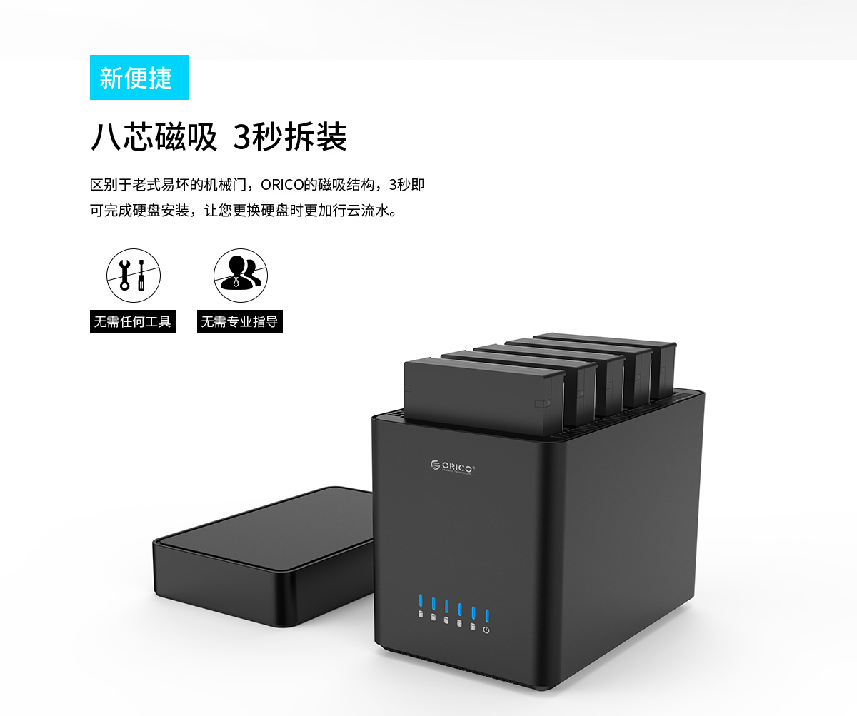 五盘位硬盘柜,八芯磁吸,3秒拆装,90TB存储,5Gbp传输
