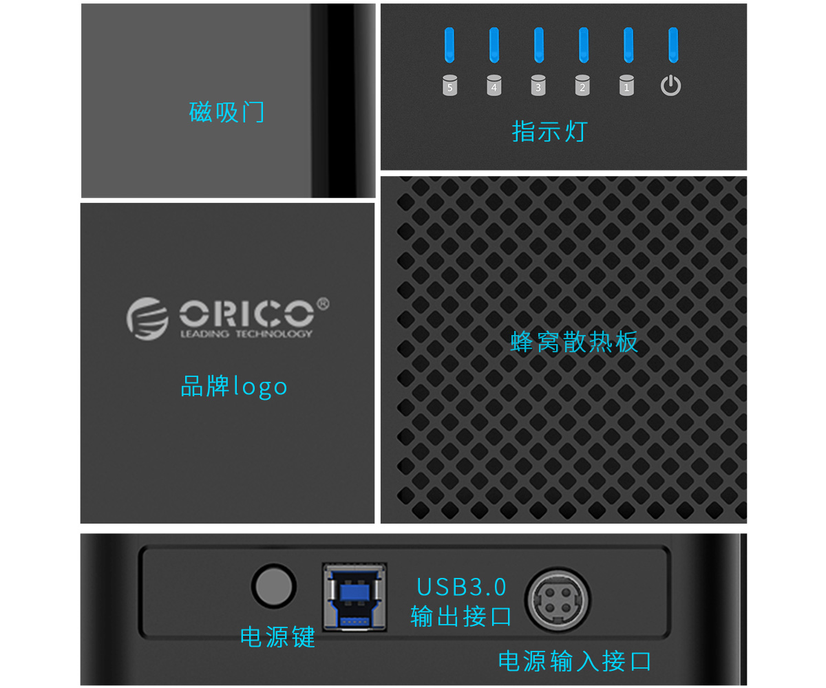 3.5英寸USB3.0磁吸式5盘位硬盘柜