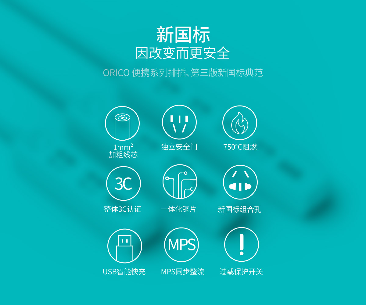 分割款新国标便携3AC口4usb桌面式排插