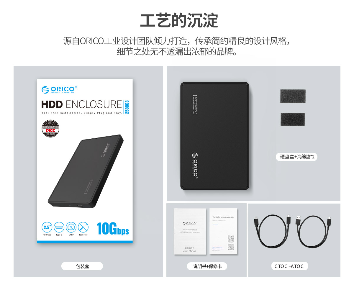 2.5英寸USB3.1 Type-C移动硬盘盒