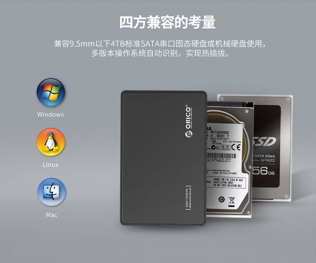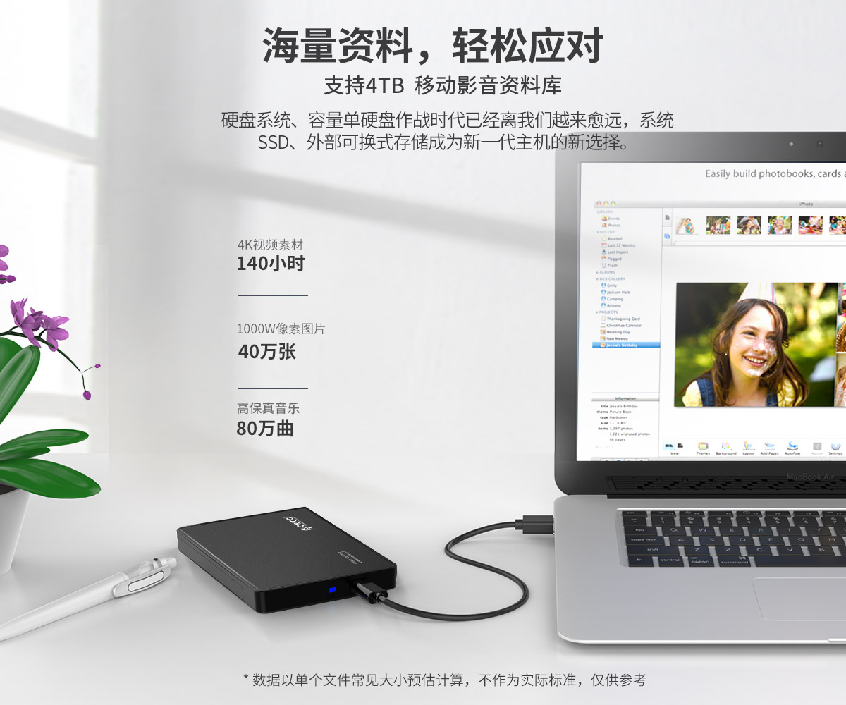 2.5英寸铝合金Type-C移动硬盘盒,4TB大容量