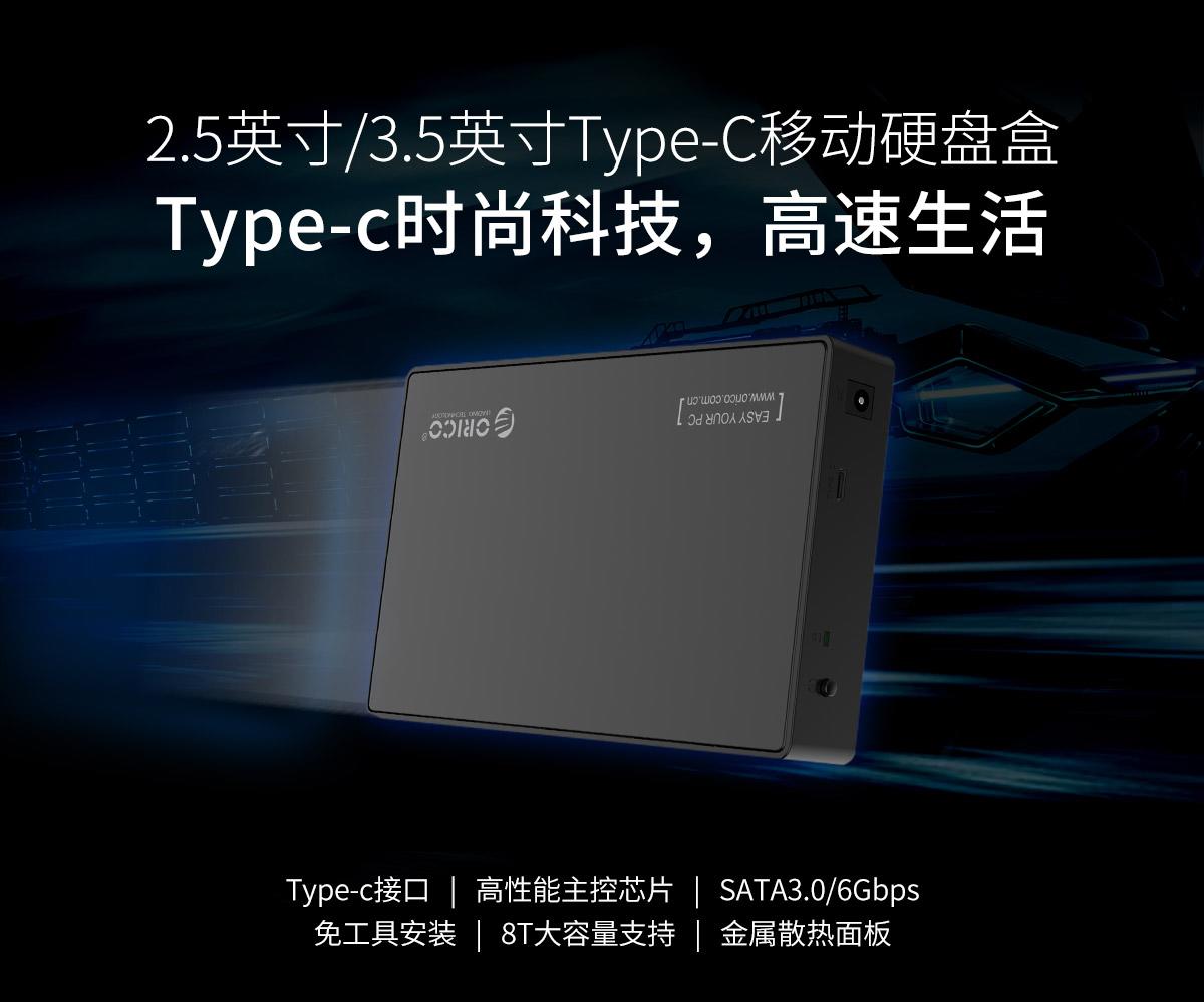 2.5英寸/3.5英寸通用Type-C移动硬盘盒,支持8TB硬盘