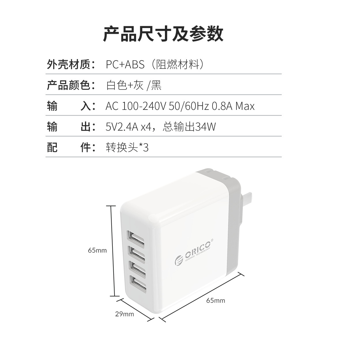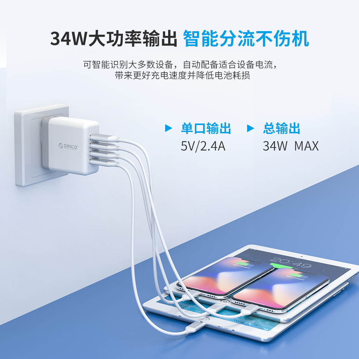 很好用的多功能充电头,可以同时充苹果手机,安卓手机等四个电器