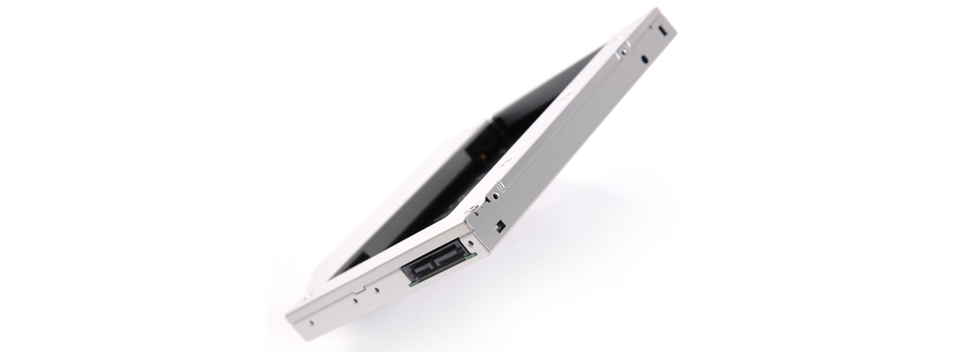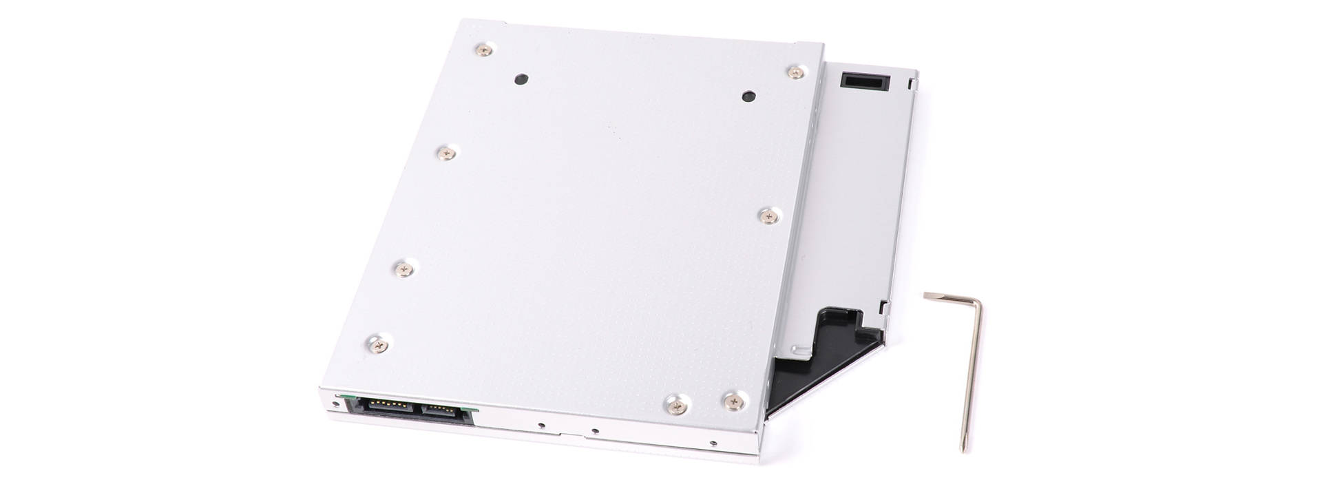 由于笔记本硬盘的特殊性和更高的制作工艺,高速与容量一直不能并肩而行,为此我们为笔记本电脑研发了这款选件——第二块硬盘适配器(俗称光驱位硬盘盒或是光驱位硬盘托架),内置于带光驱的大部分机型中,实现2块硬盘同时使用,高容量与高速兼得;在SSD越来越普及的时代,光驱位硬盘架为您带来了既有高速运行的系统,又能大容量存储的解决方案。