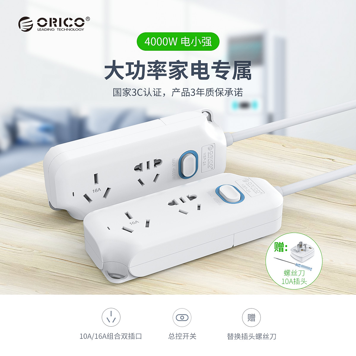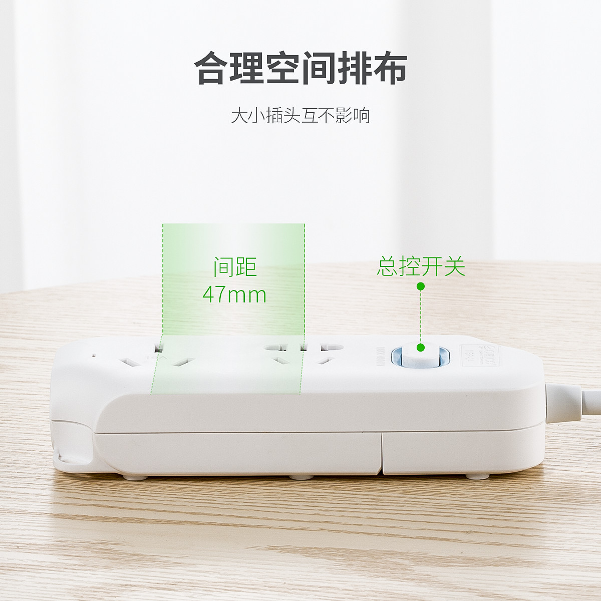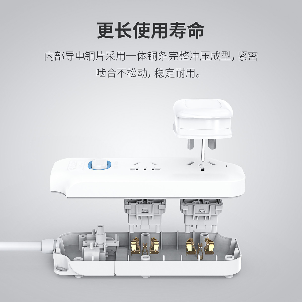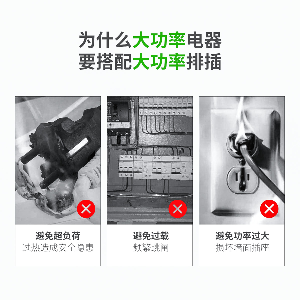 电立方2500W大功率4 AC口+3 USB排插(带总控开关)
