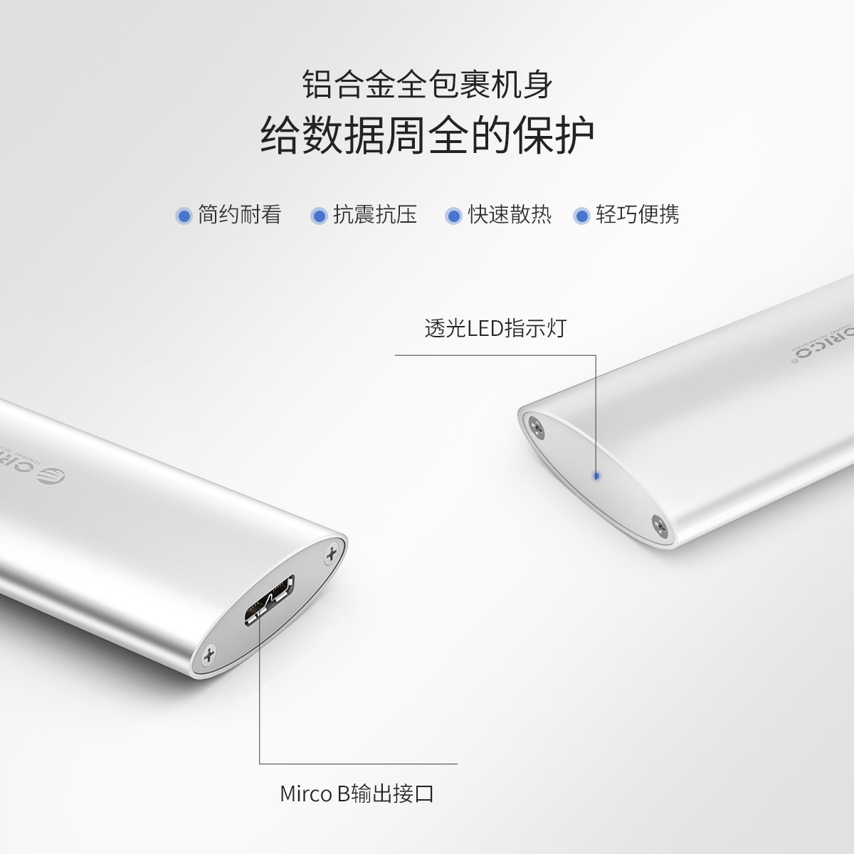 M.2转Micro B铝合金固态硬盘盒(椭圆)