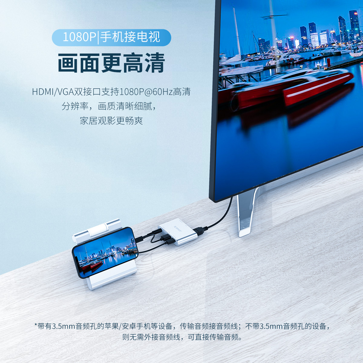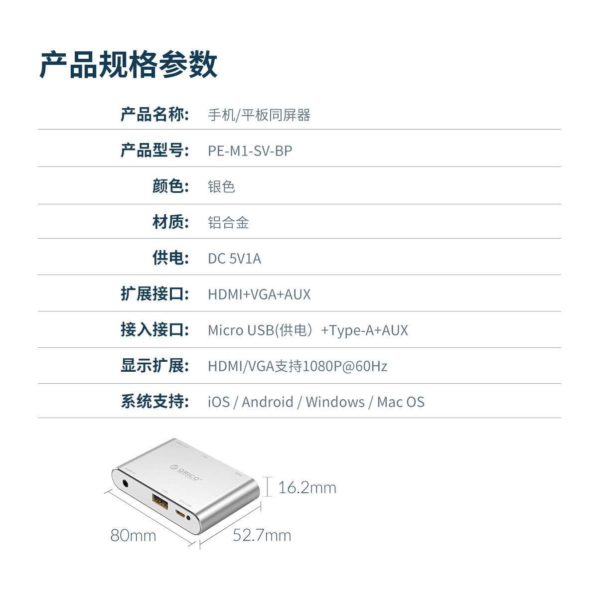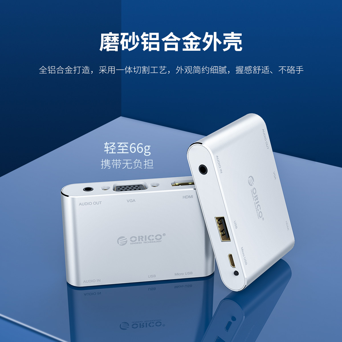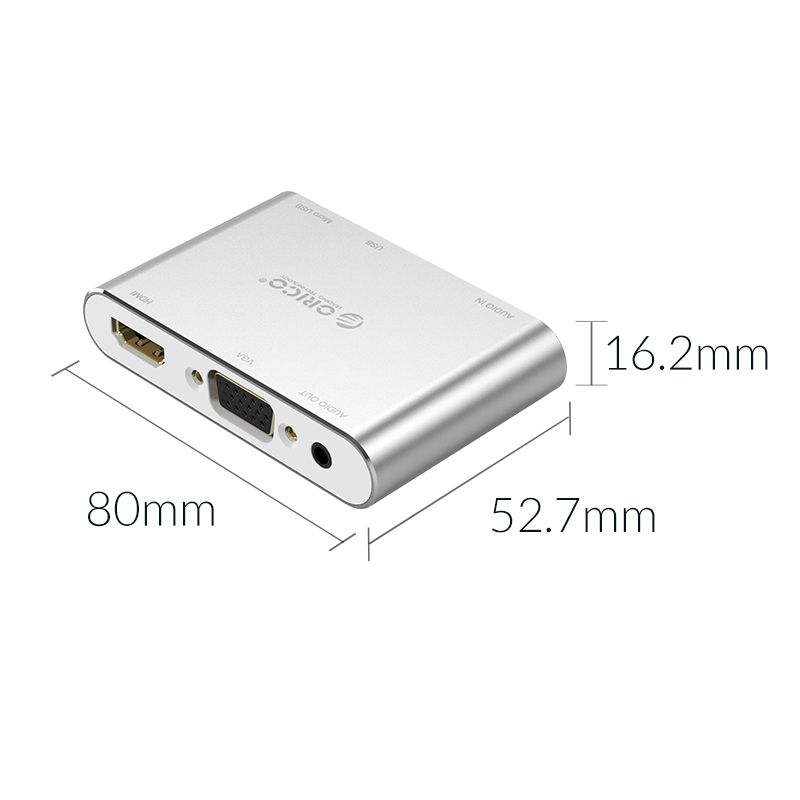 1080P@60HZ高清分辨率,HDMI/VGA双接口,3.5MM独立音频输出,外接供电,即插即用,铝合金外壳