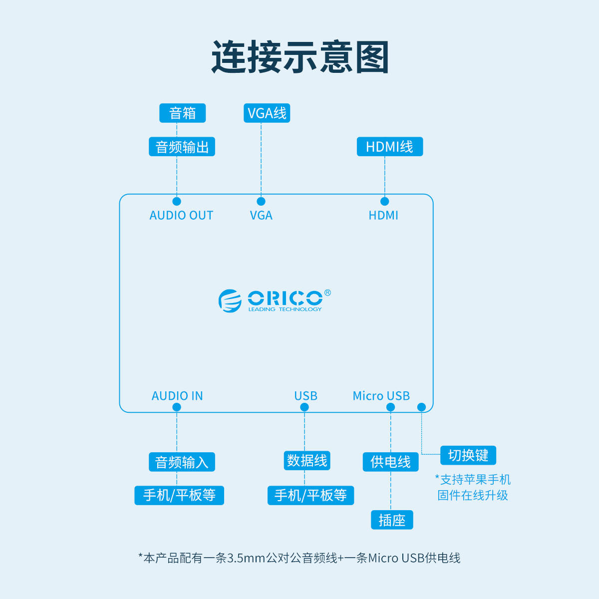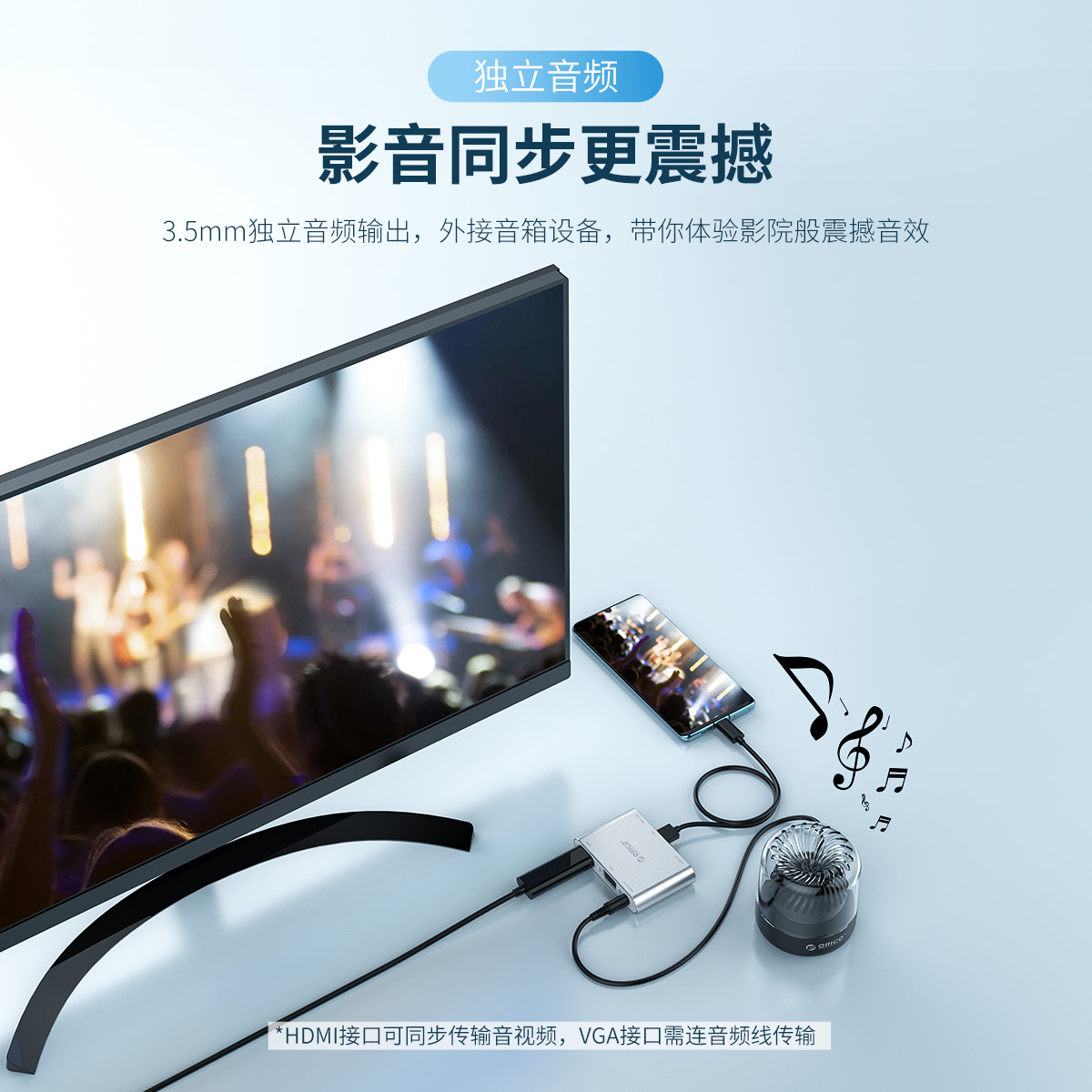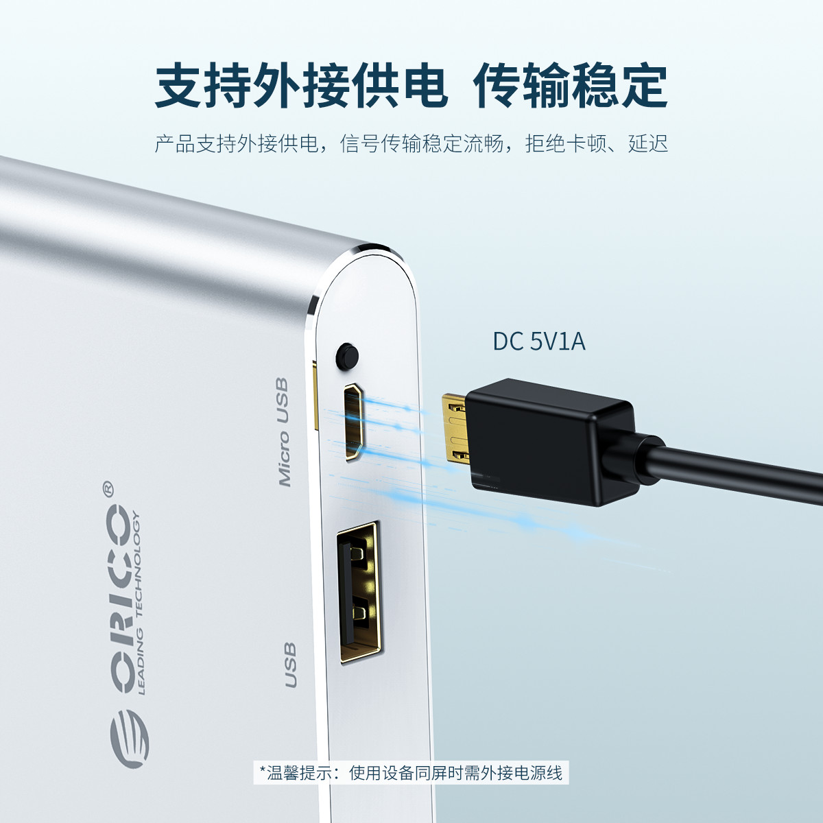 1080P@60HZ高清分辨率,HDMI/VGA双接口,3.5MM独立音频输出,外接供电,即插即用,铝合金外壳