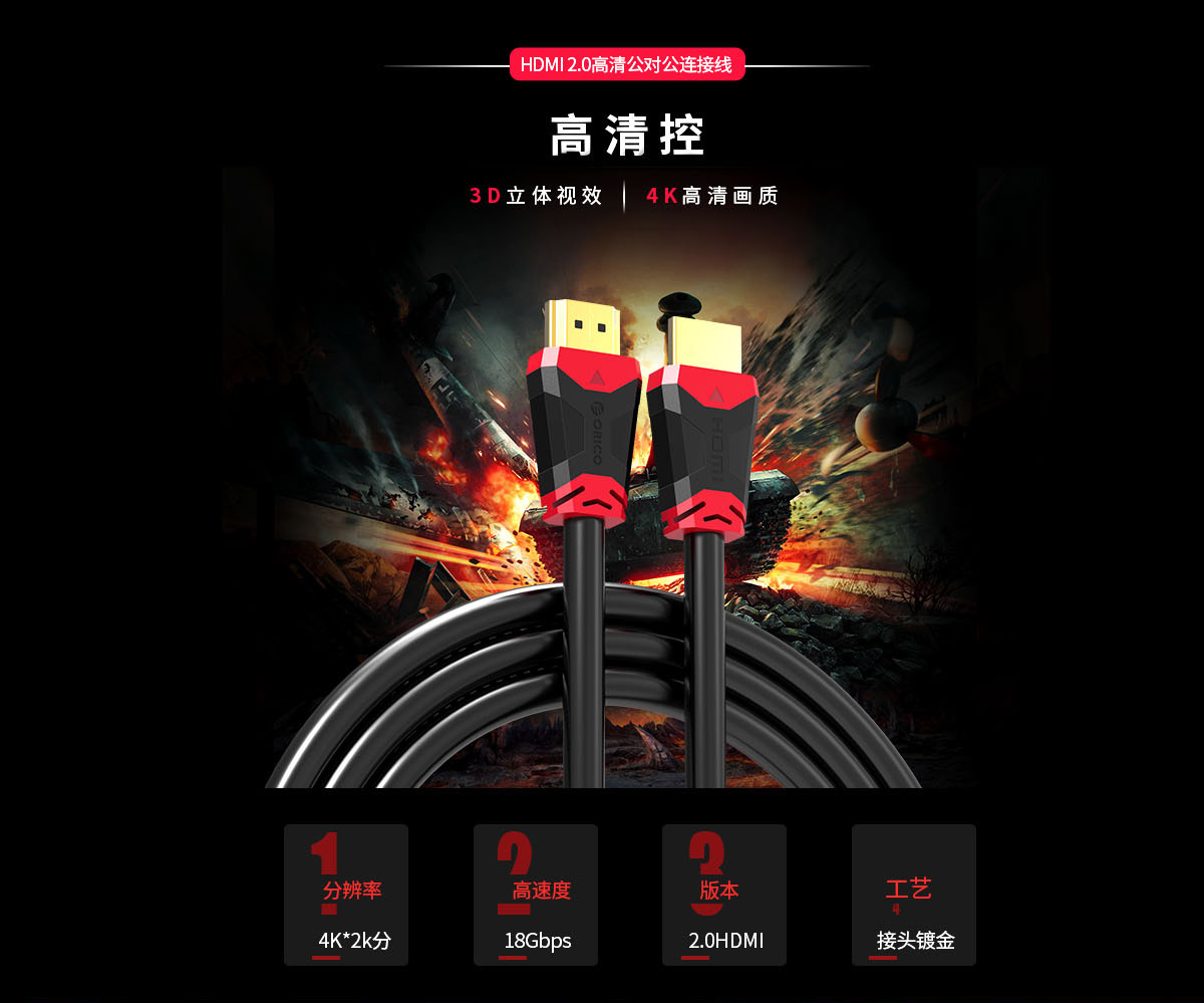 HDMI转HDMI公对公影音传输线(红色303)