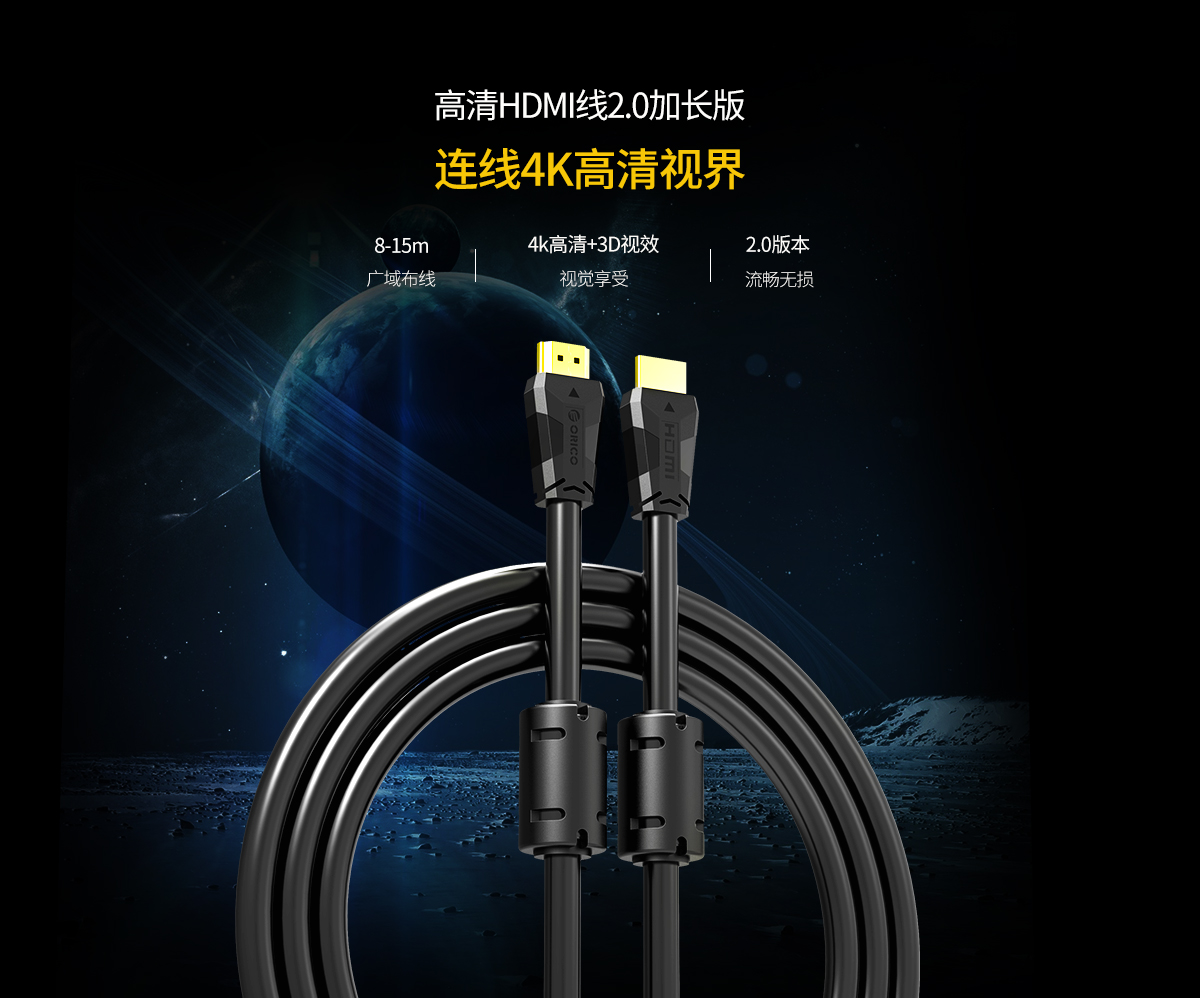 HDMI转HDMI公对公抗干扰影音传输线(加长版)
