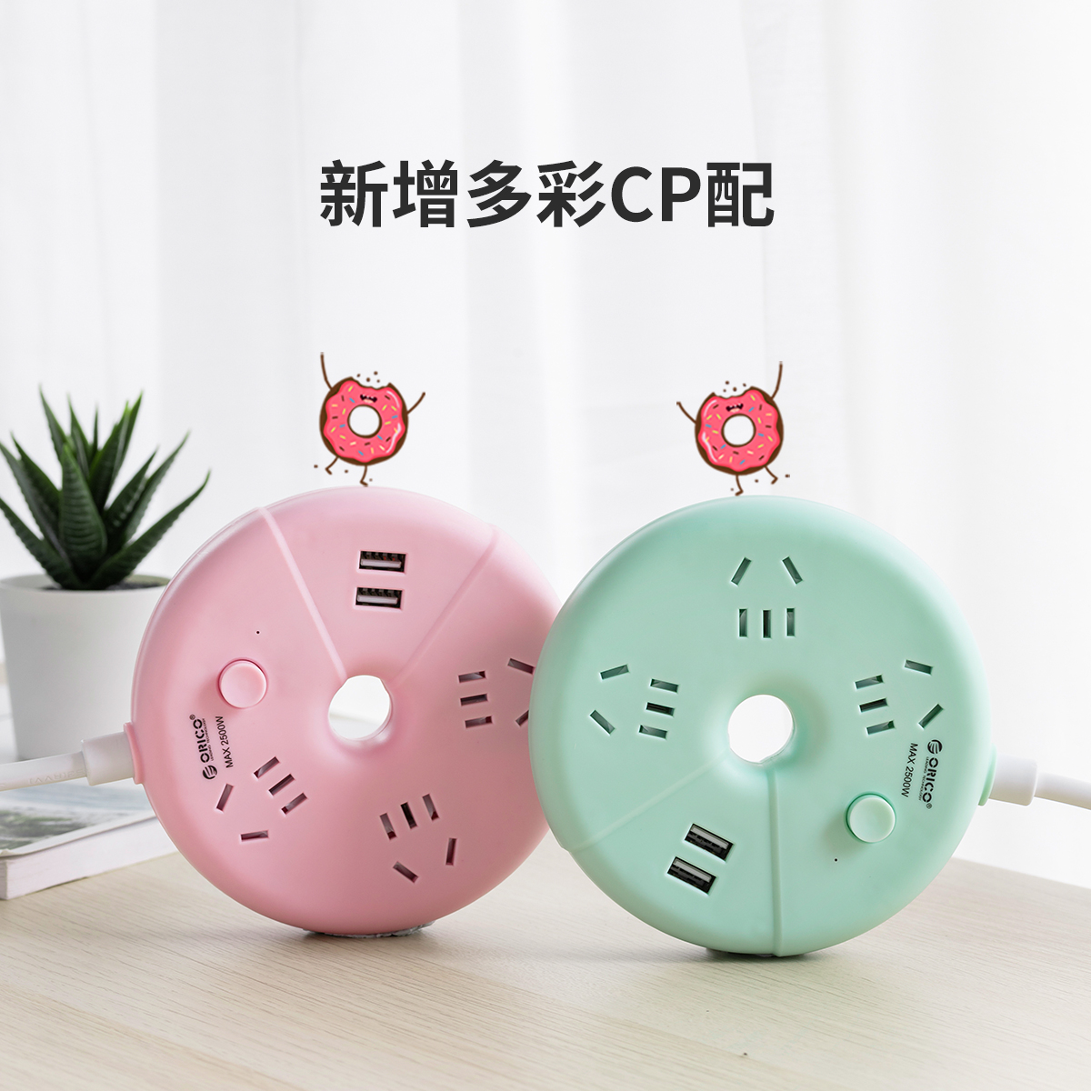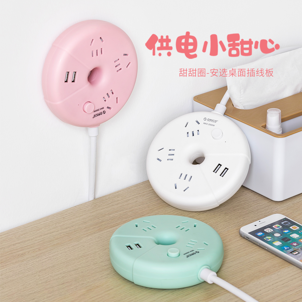 甜甜圈桌面插线板,纯AC延长线插座