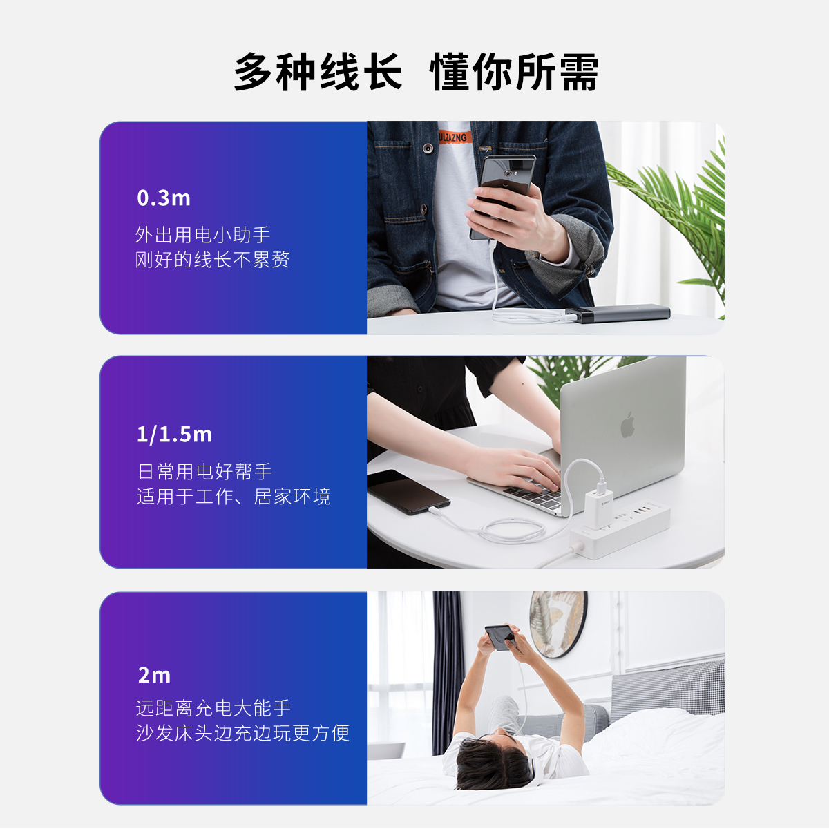 充电传输两不误,耐插拔,接头加固,经久耐用,多种线长