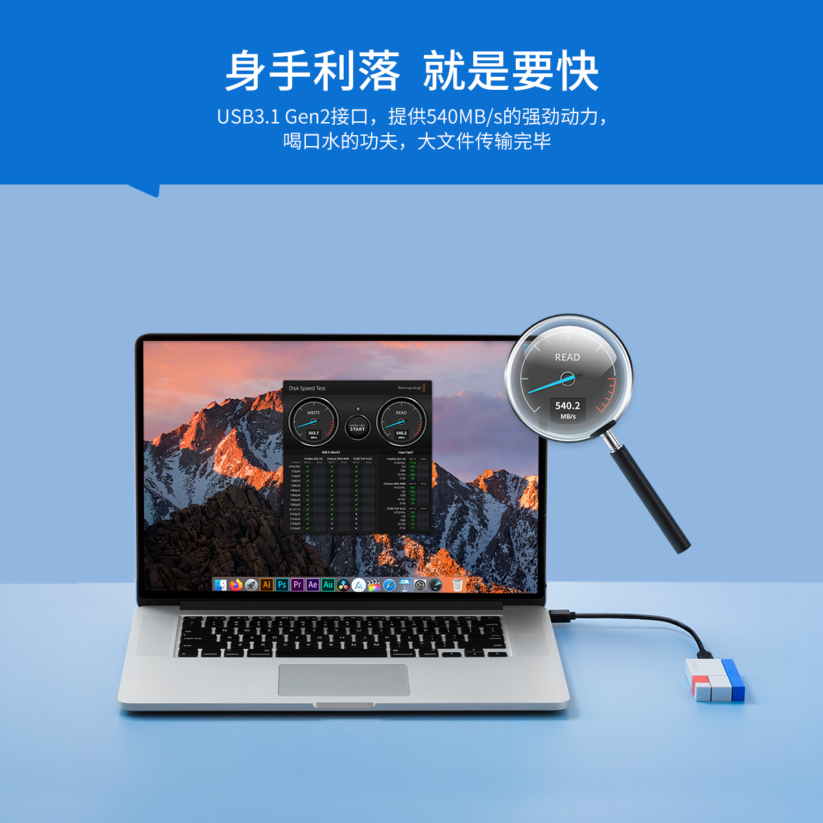 USB3.1 Gen2接口,提供540MB/s的强劲动力,2秒1G轻松传,手机直连快速访问扩容
