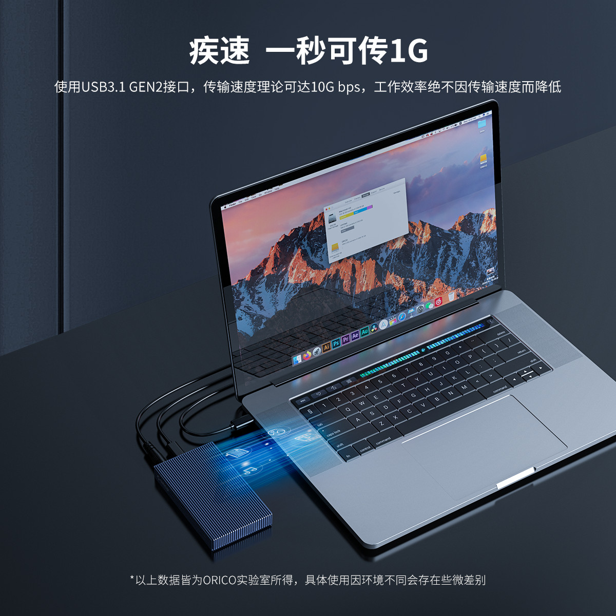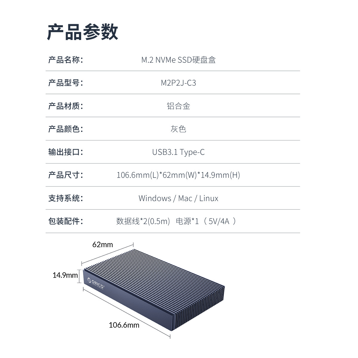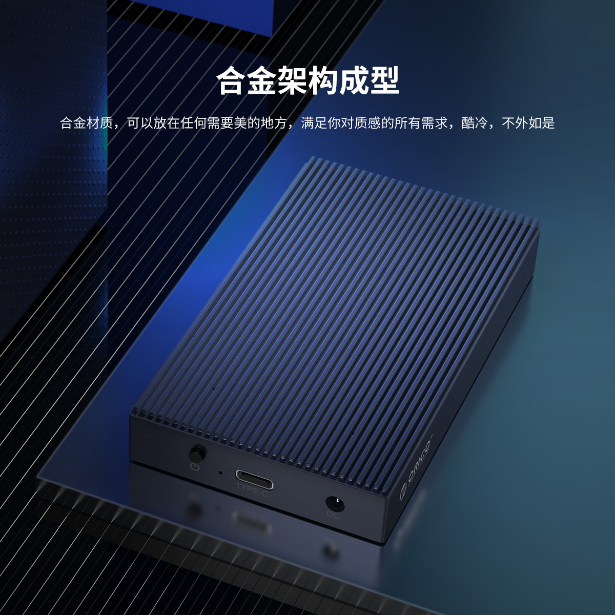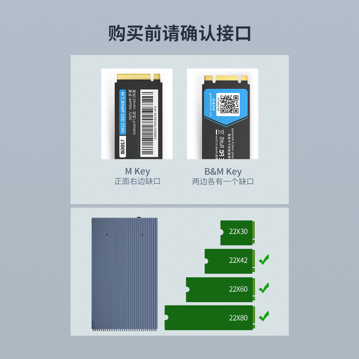 Type-c双盘位M.2 NVMe硬盘盒,利用条纹散热棱扩大散热面积,双盘位4TB