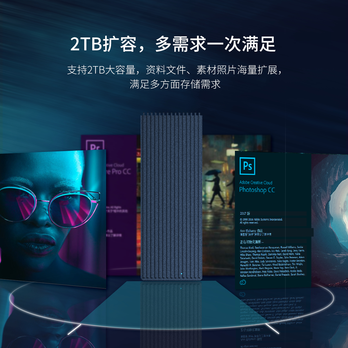 实测速度可达2000MB/S左右,四重散热,硬盘不发烧,支持2TB大容量
