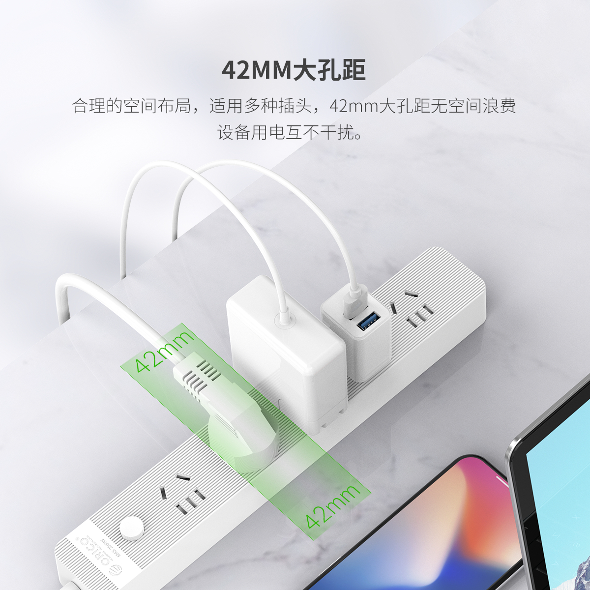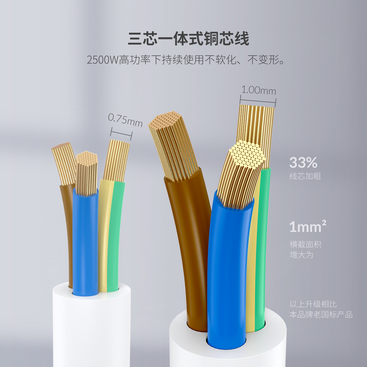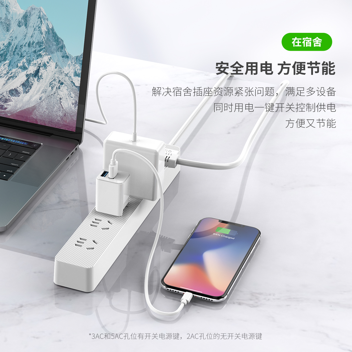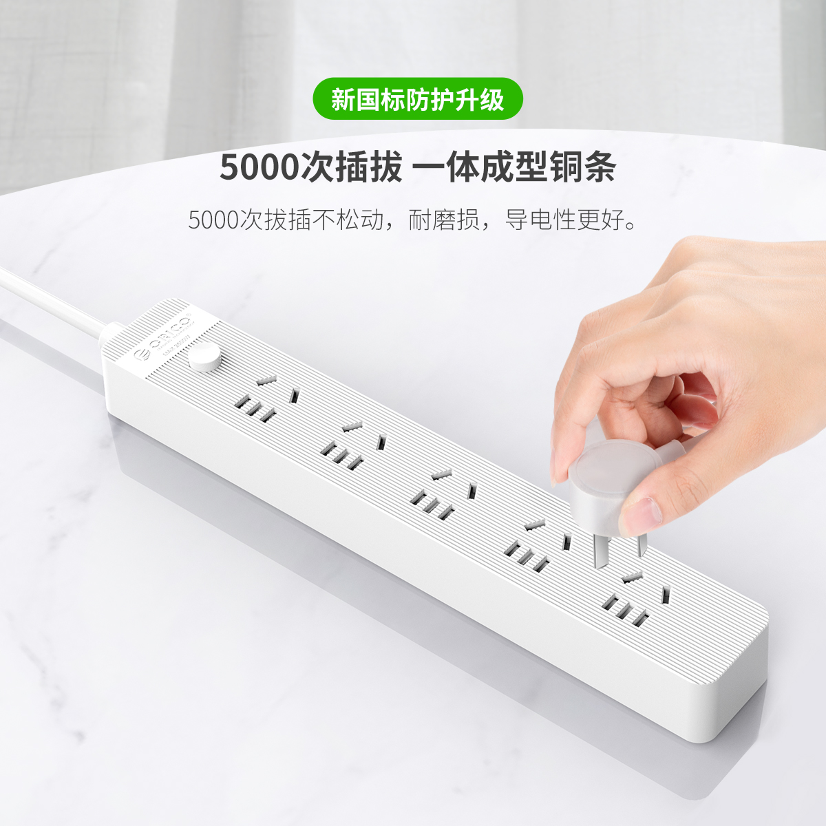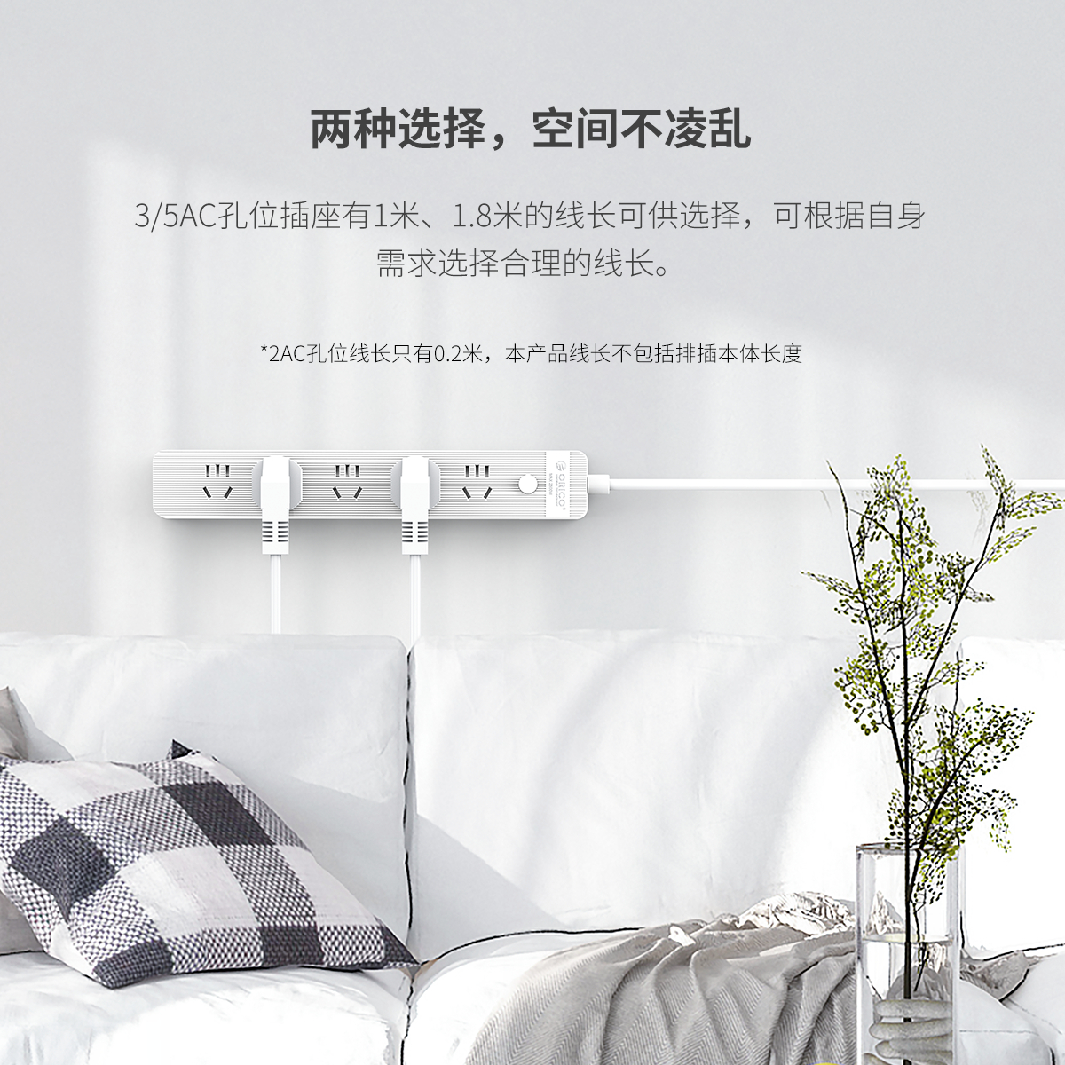 总控开关排插,简约条纹,一键电源断电,安全用电方便节能,三芯一体式铜芯线