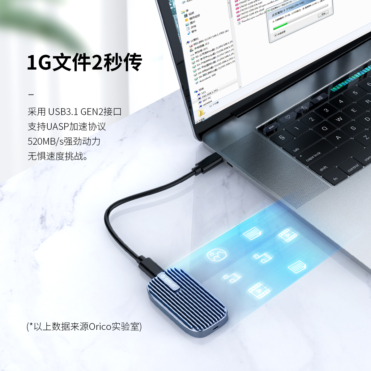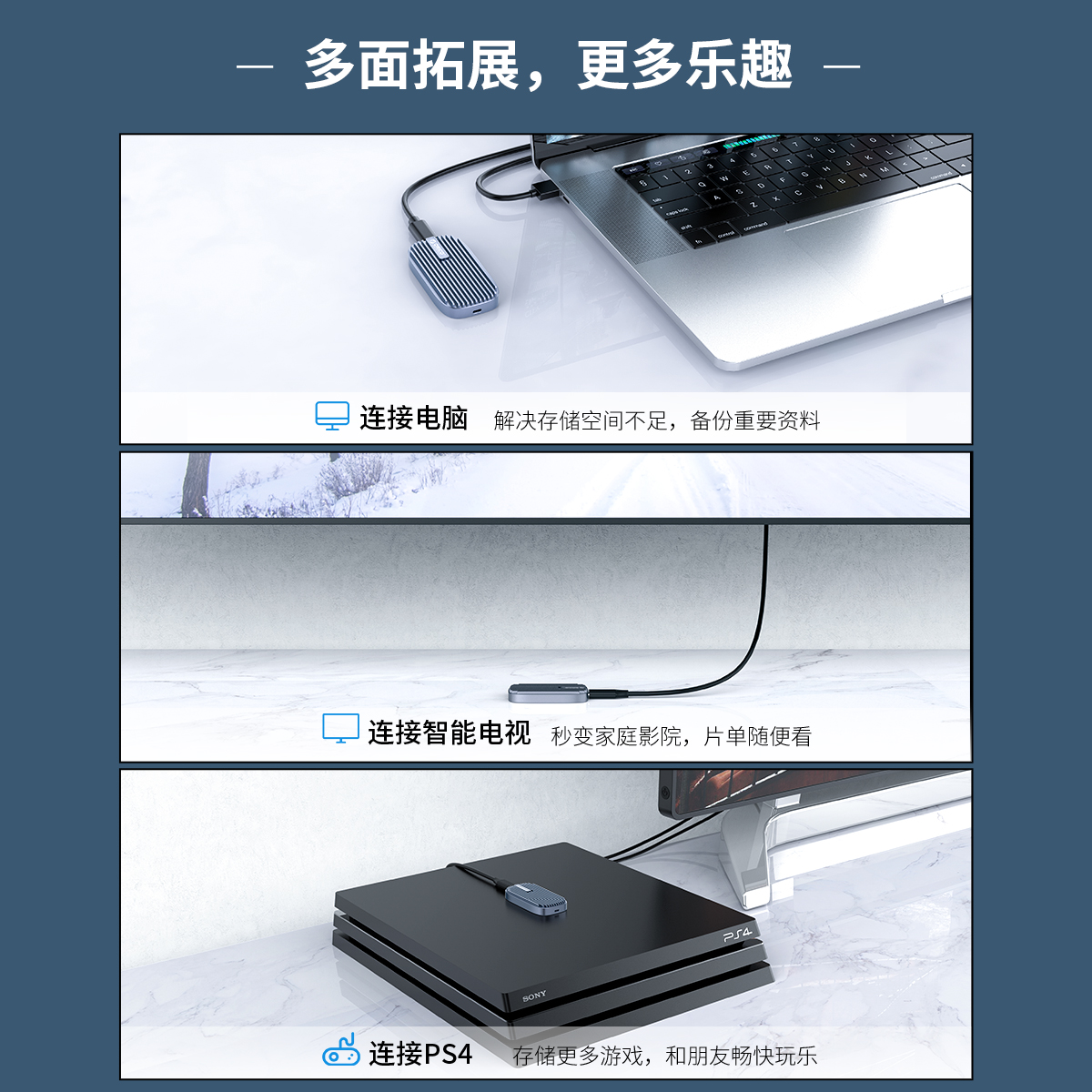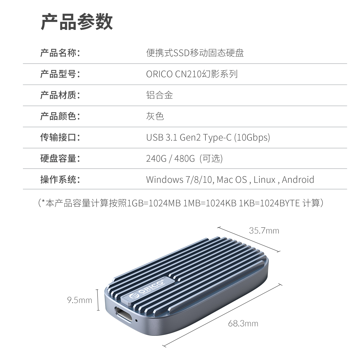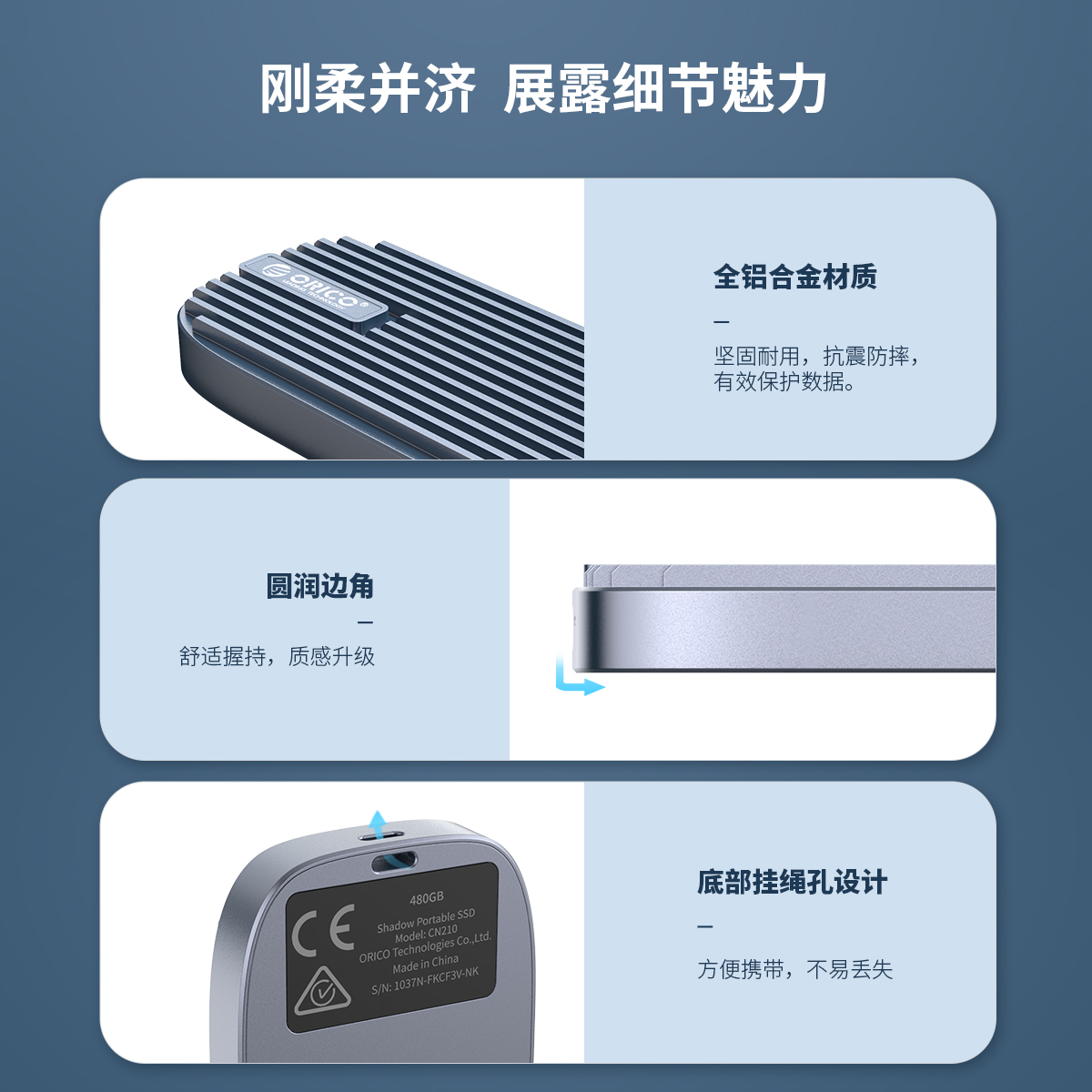 USB 3.1固态移动硬盘,OTG功能,支持UASP加速协议,52OMB/s强劲动力,配有一条CTOA和C TOC二合一数据线,
