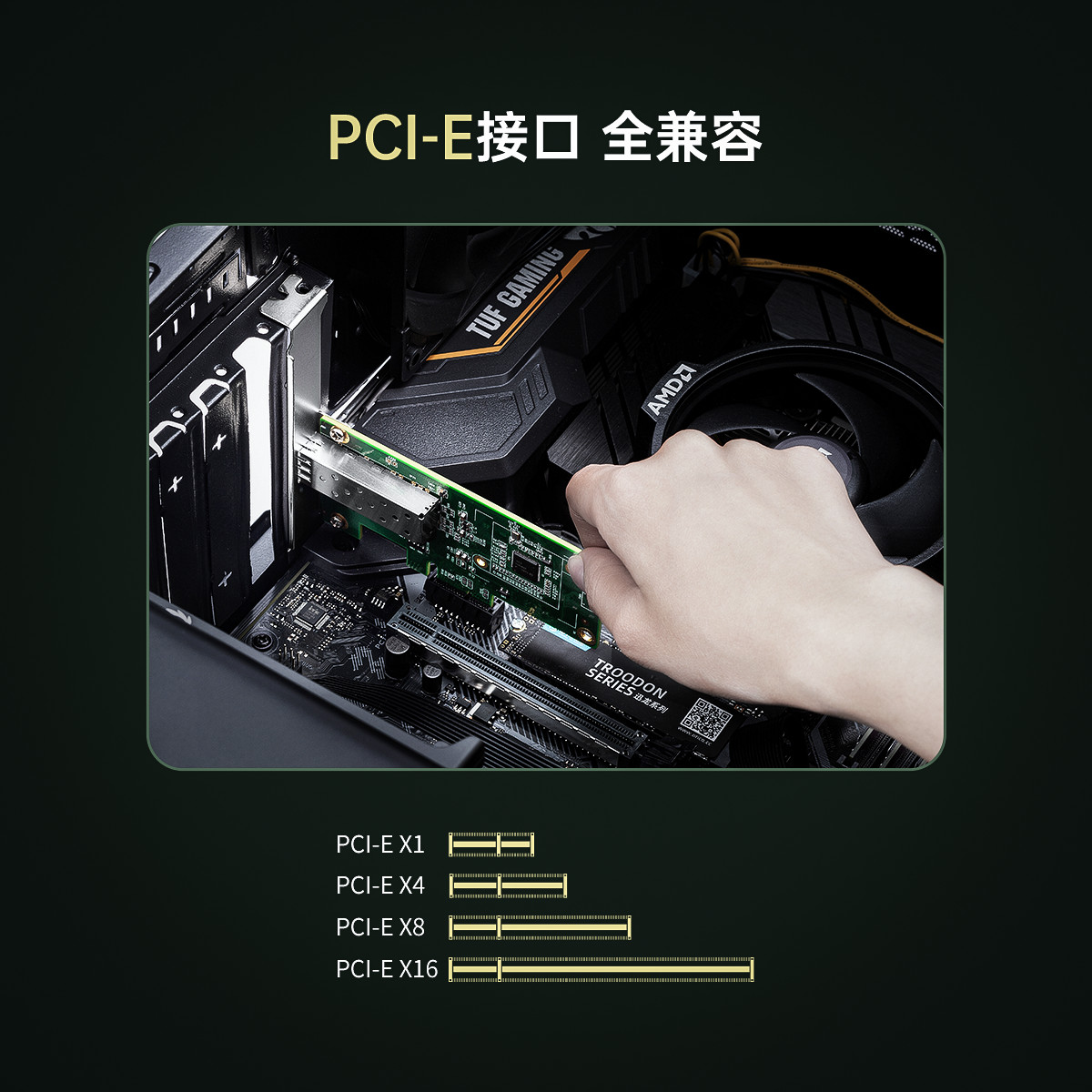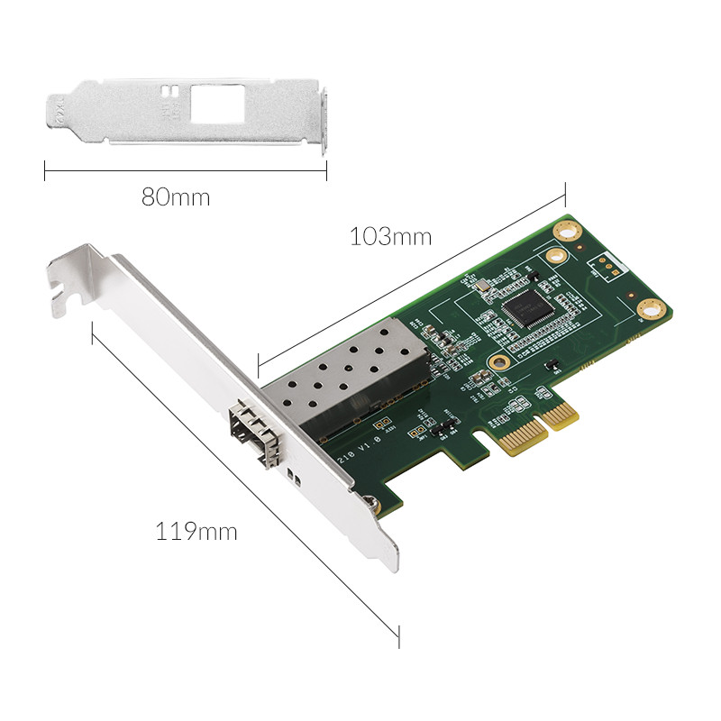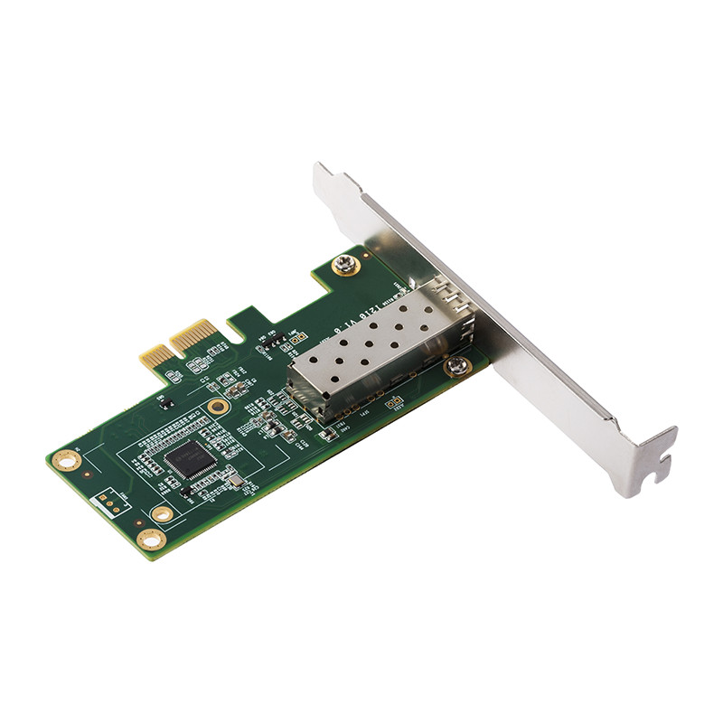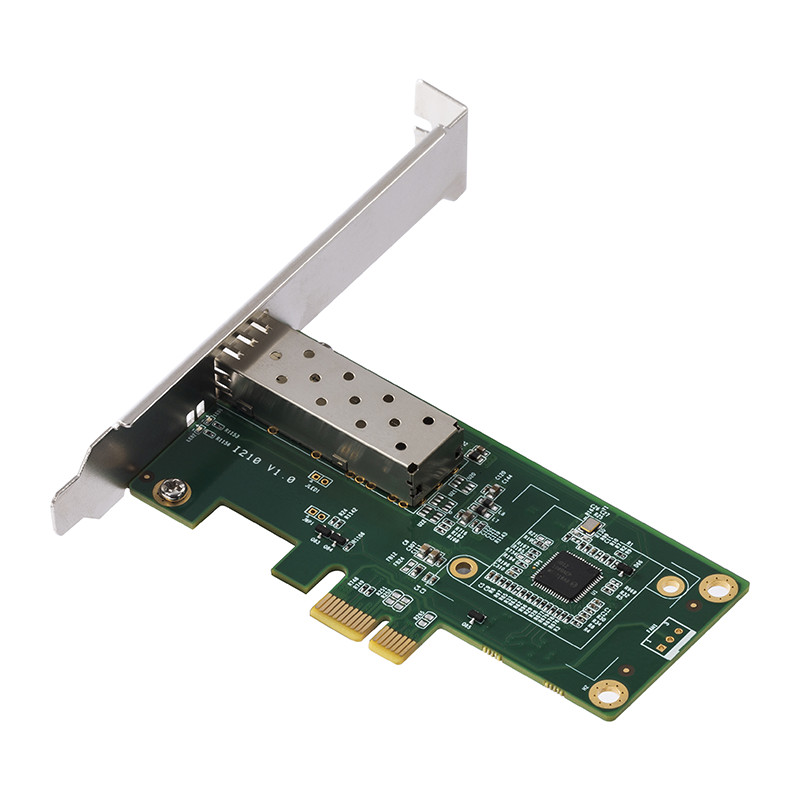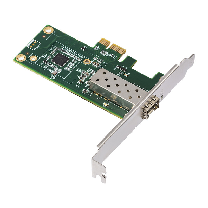 PCl-E插槽│强劲散热|高速稳定,配备一个标准的SFP光纤口,可插入千兆光纤模块,采用Intel 1210芯片,更大程度上消除干扰