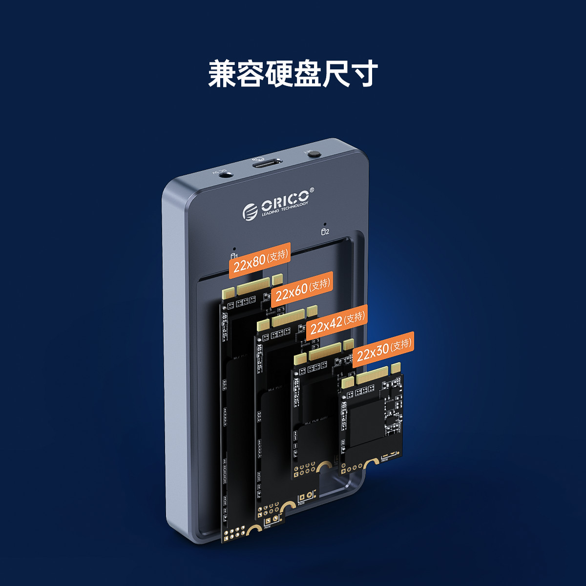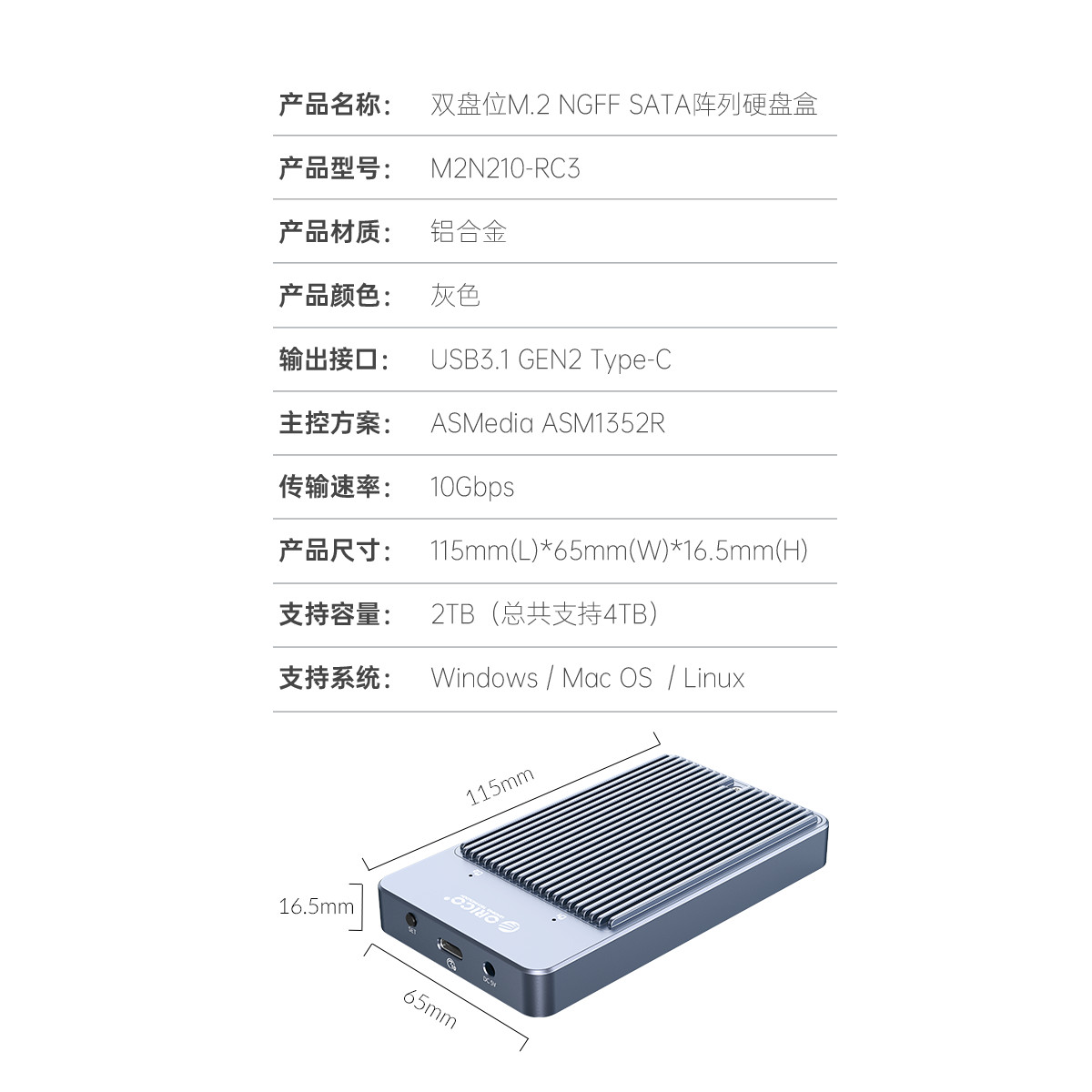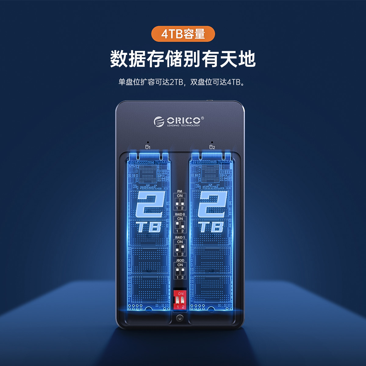 双盘位M.2 NGFF SATA SSD阵列硬盘盒