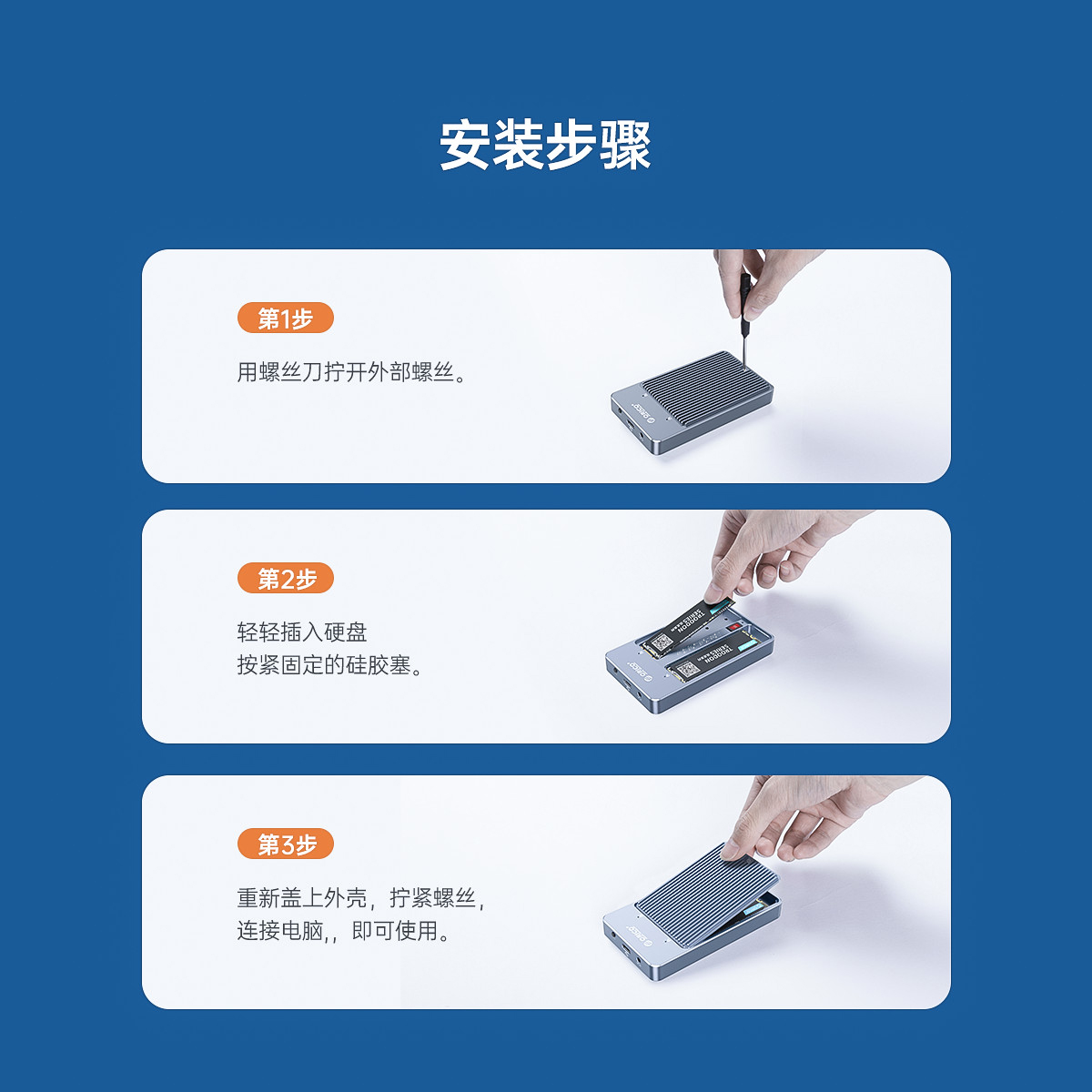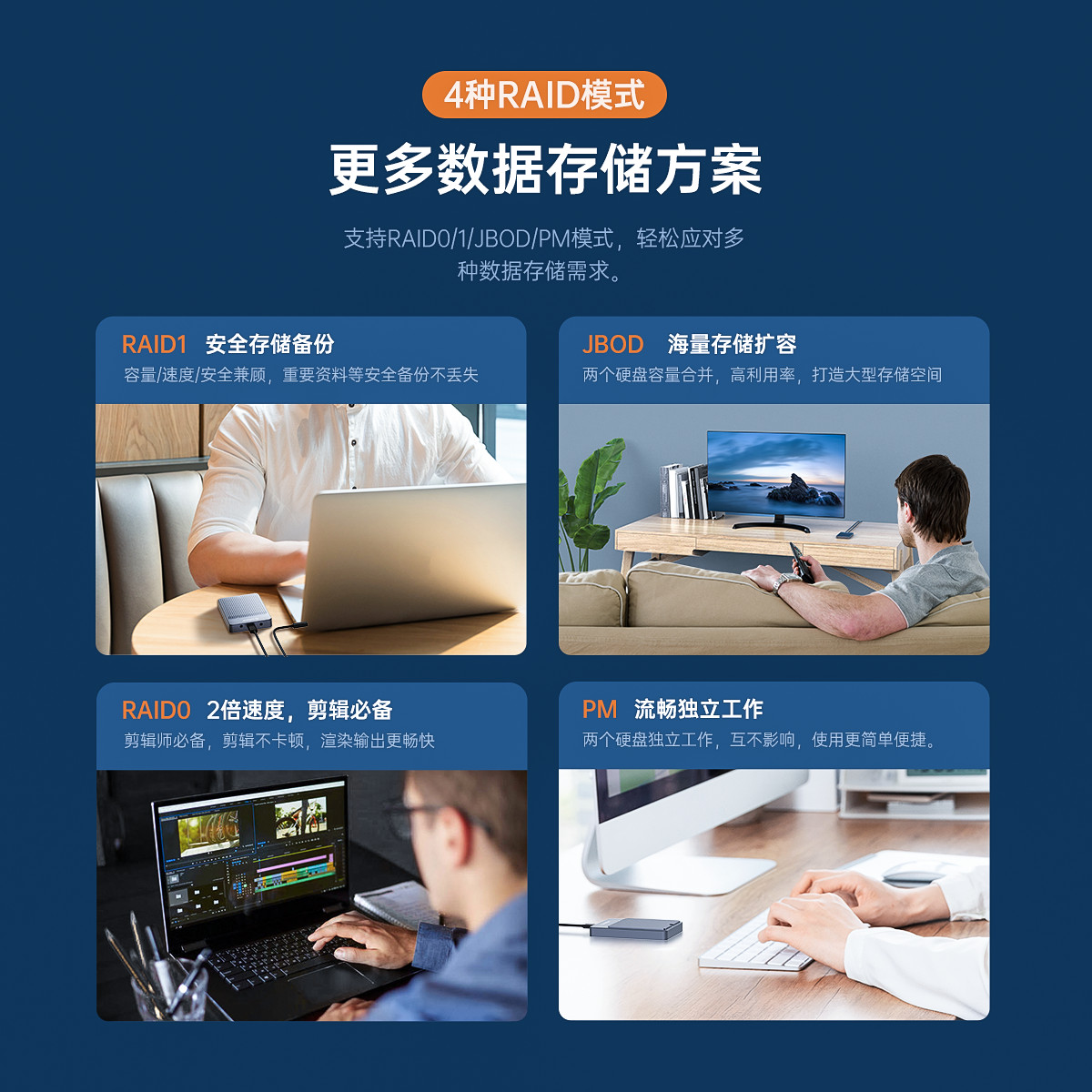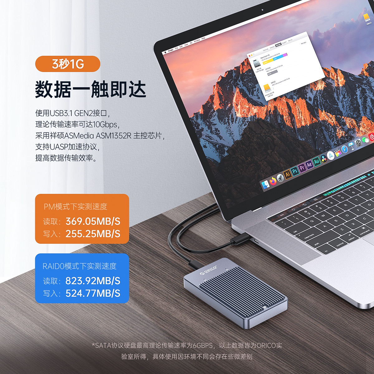 双盘位M.2 NGFF SATA SSD阵列硬盘盒