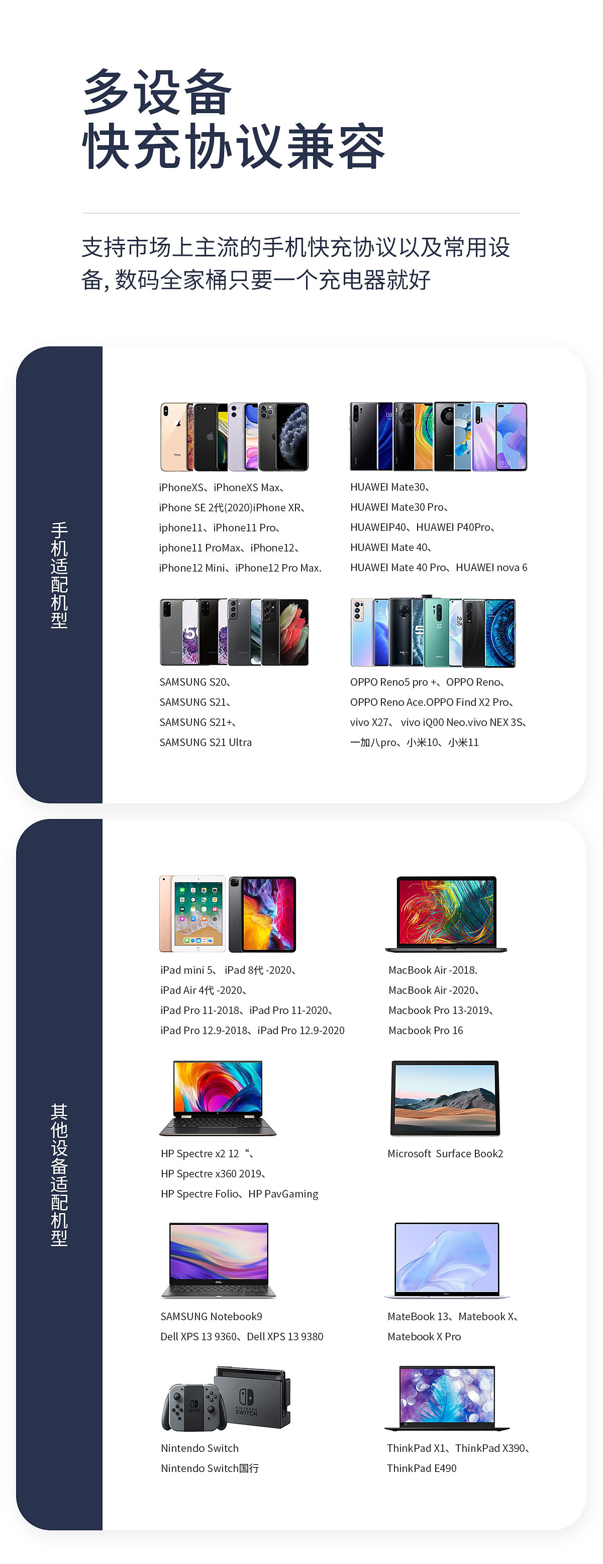BC1.2、Apple2.4A、QC2.0、QC3.0、PD2.0、PD3.0、FCP/SCP、AFC 以及 PPS 协议