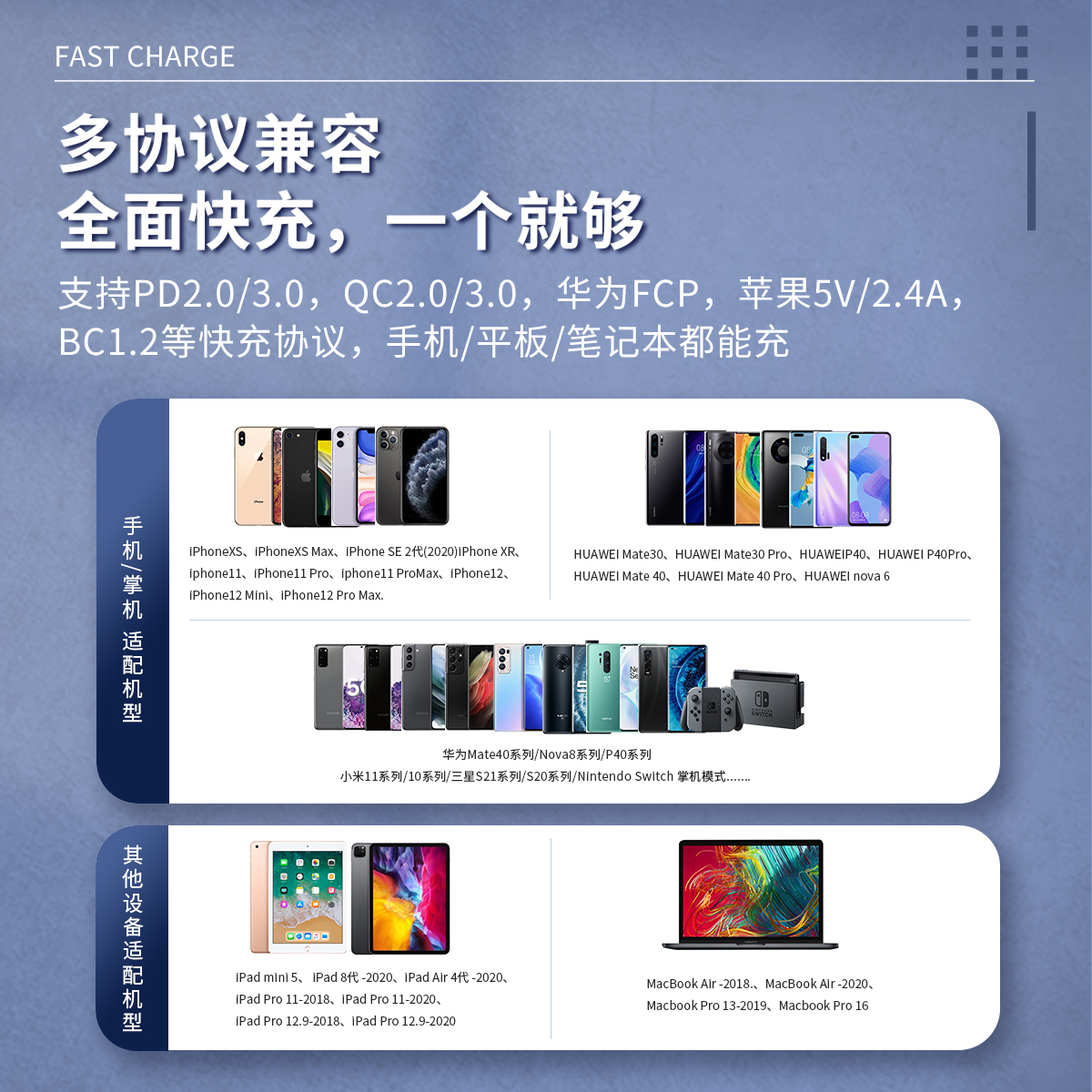 BC1.2/DCP、Apple2.4、QC2.0、QC3.0、AFC、FCP、PD2.0、PD3.0、PPS