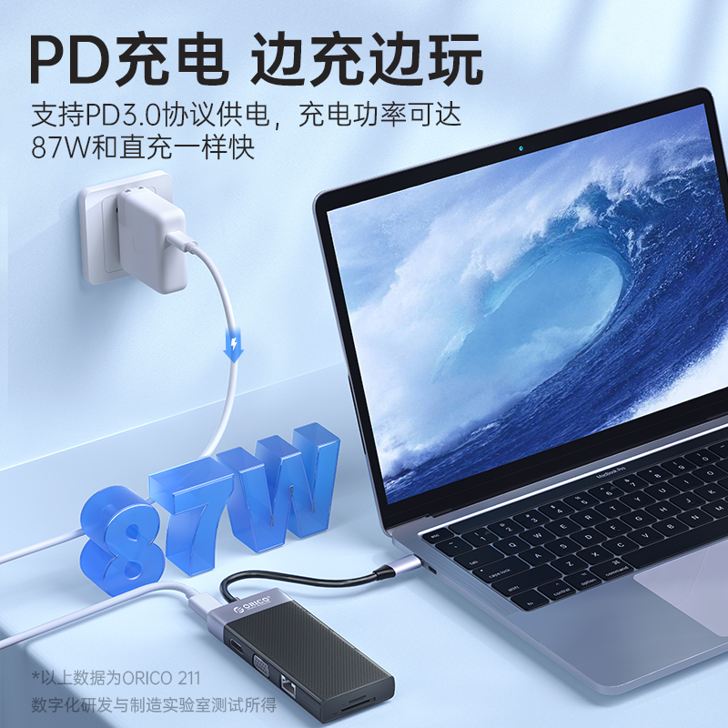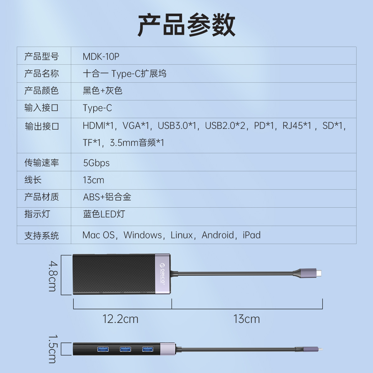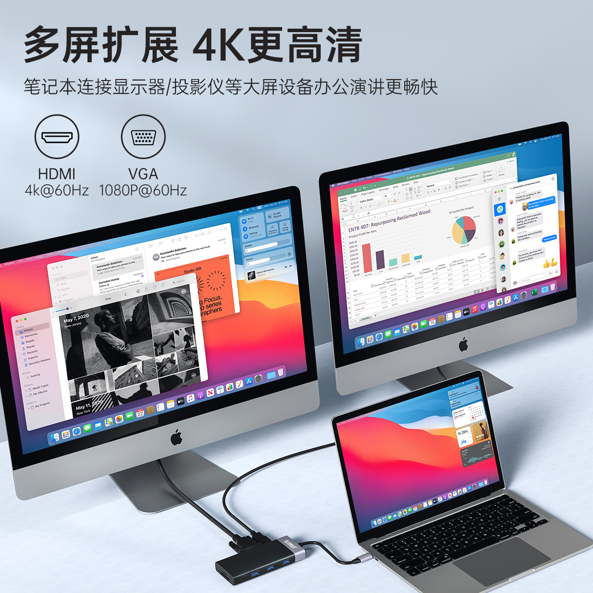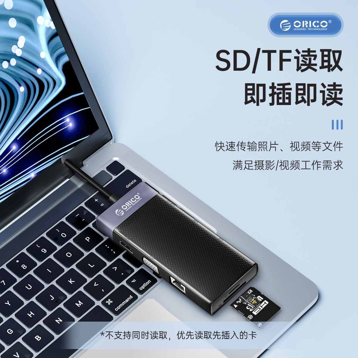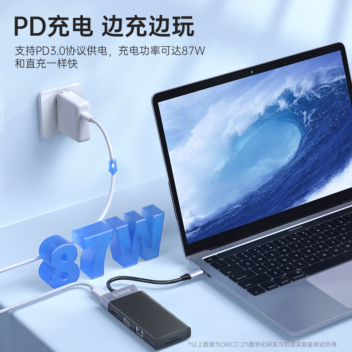 HDMI*1,VGA*1,USB3.0*1,USB2.0*2,PD*1,RJ45*1 ,SD*1,TF*1,3.5mm音频*1