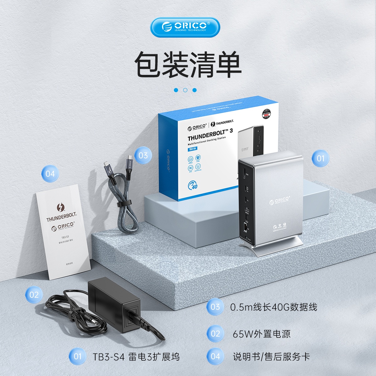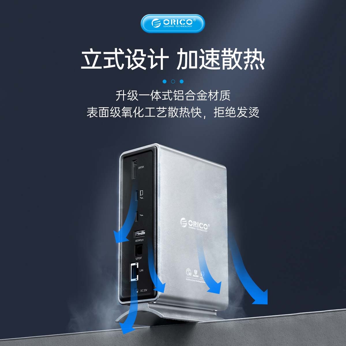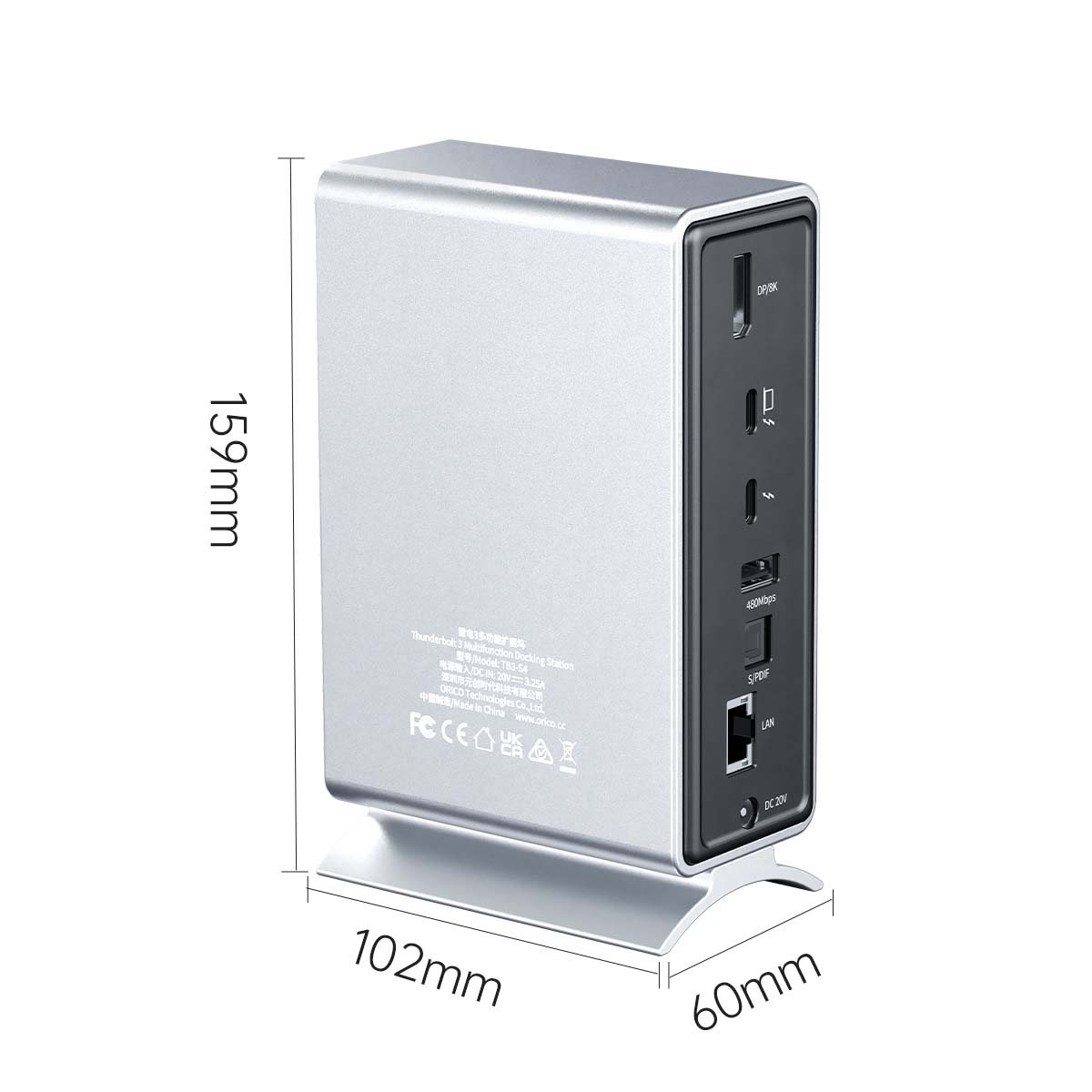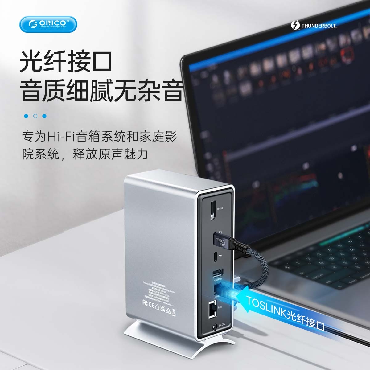 Thunderbolt3×1、USB-C (10Gbps)×2、USB-A (10Gbps)×1、USB-A (5Gbps)×2、USB-A2.0×2、RJ45千兆网口×1、3.0SD/TF读卡器(同读)×2、3.5mm Audio/Mic×1、S/PDIF×1、DP 8K@30Hz*1