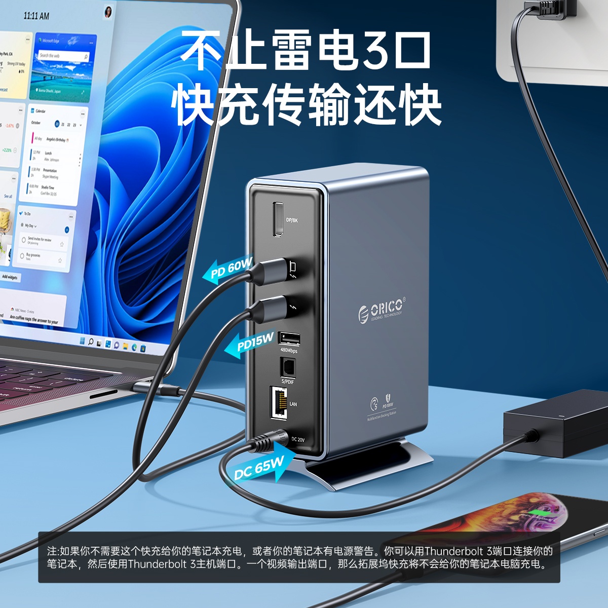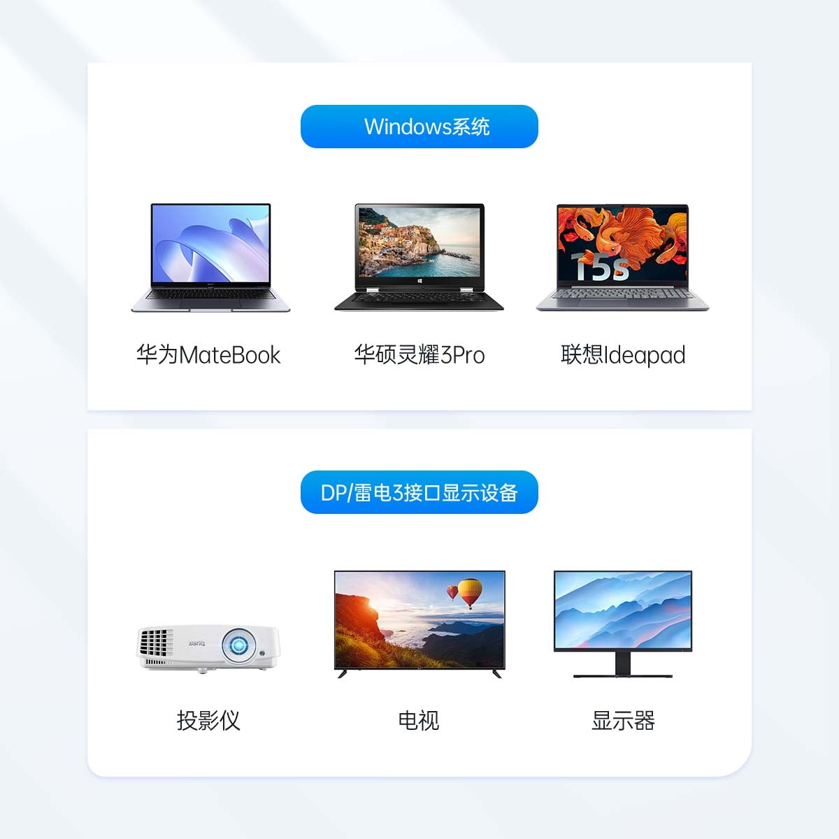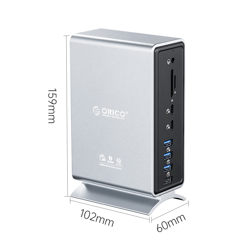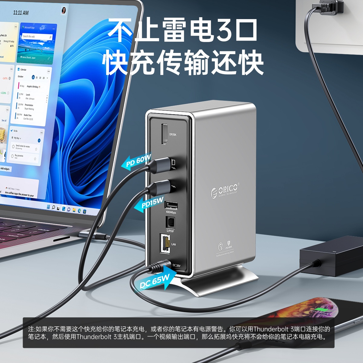 Thunderbolt3×1、USB-C (10Gbps)×2、USB-A (10Gbps)×1、USB-A (5Gbps)×2、USB-A2.0×2、RJ45千兆网口×1、3.0SD/TF读卡器(同读)×2、3.5mm Audio/Mic×1、S/PDIF×1、DP 8K@30Hz*1