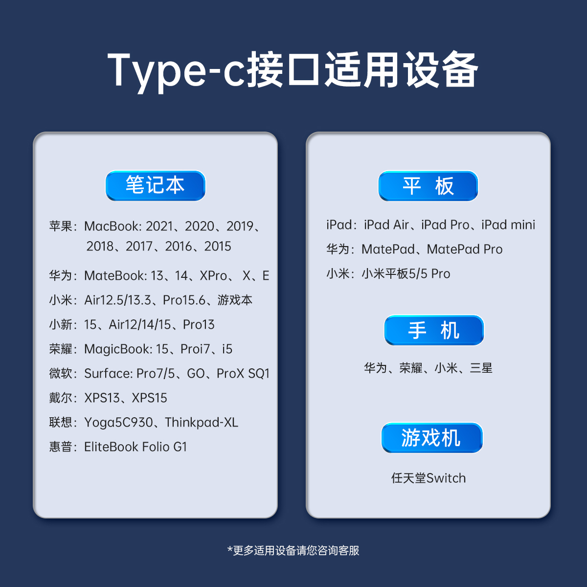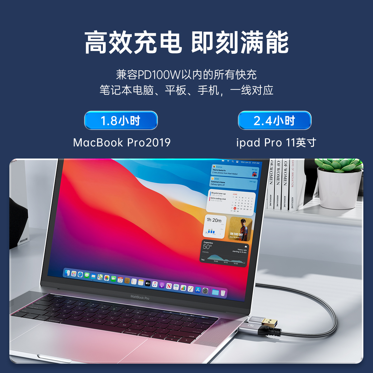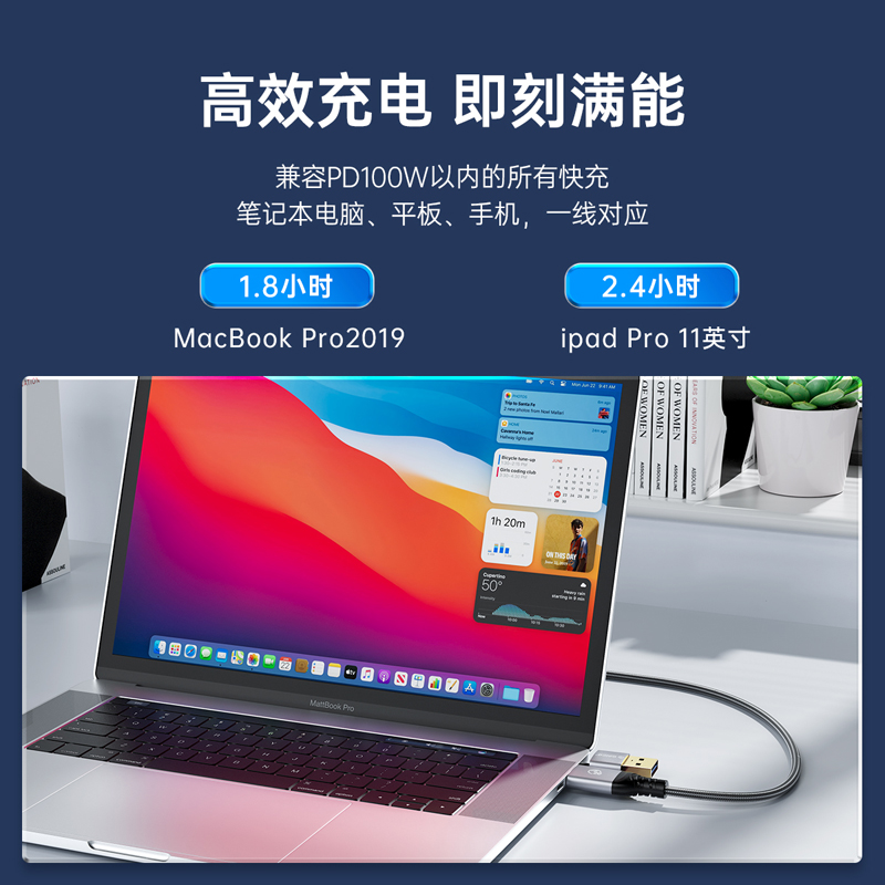 USB-C转USB-C:PD100W 20V5A(MAX)USB-A转USB-C:支持5V/3A(MAX)、9V/2A(MAX)、12V/1.5A (MAX);