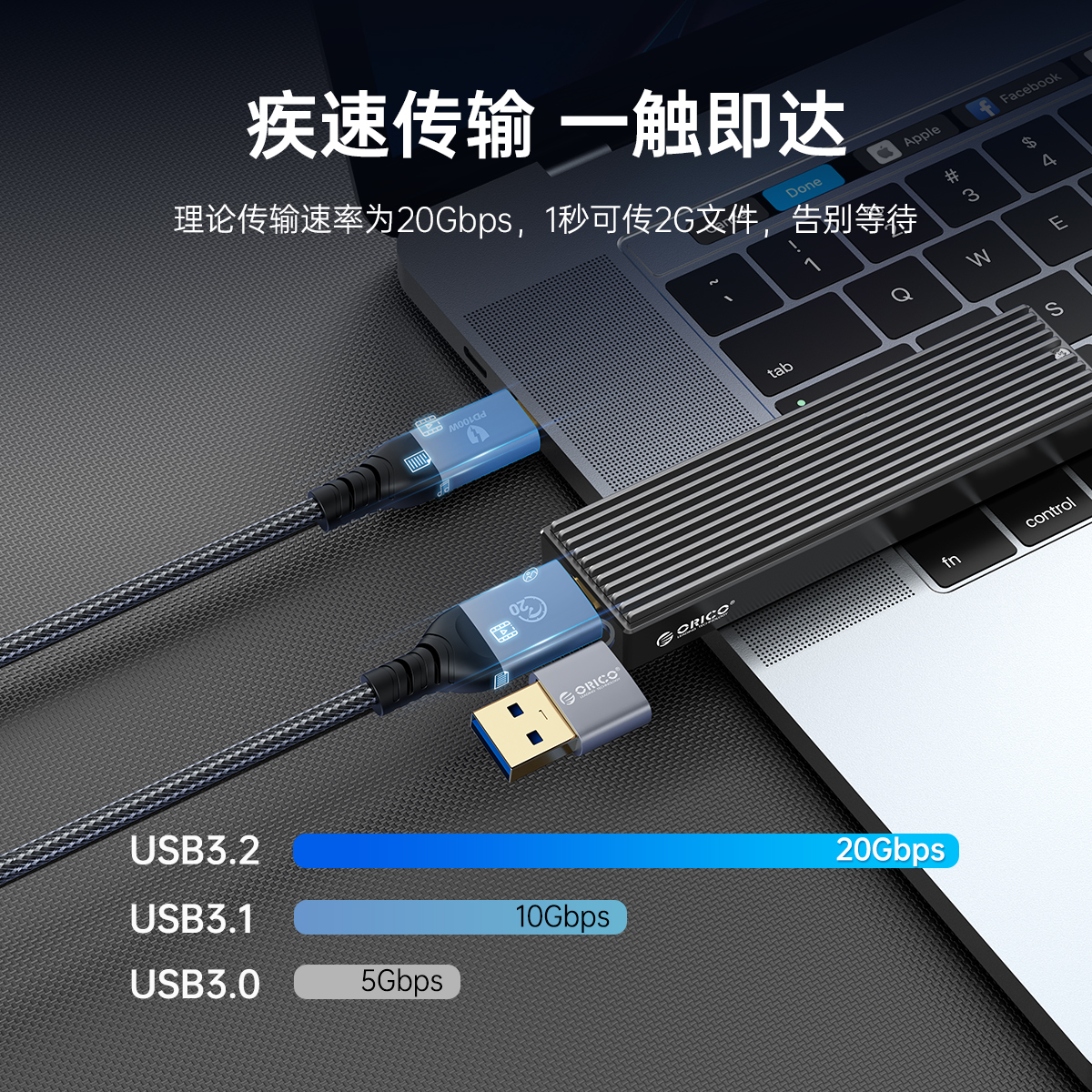 USB-C转USB-C:20GbpsUSB-A转USB-C:10Gbps