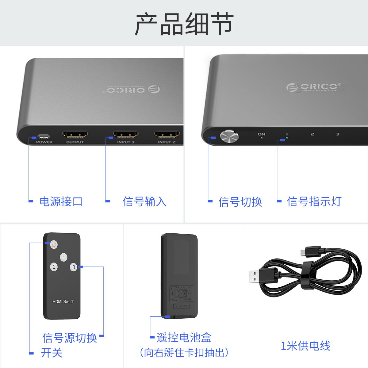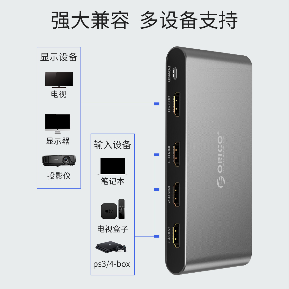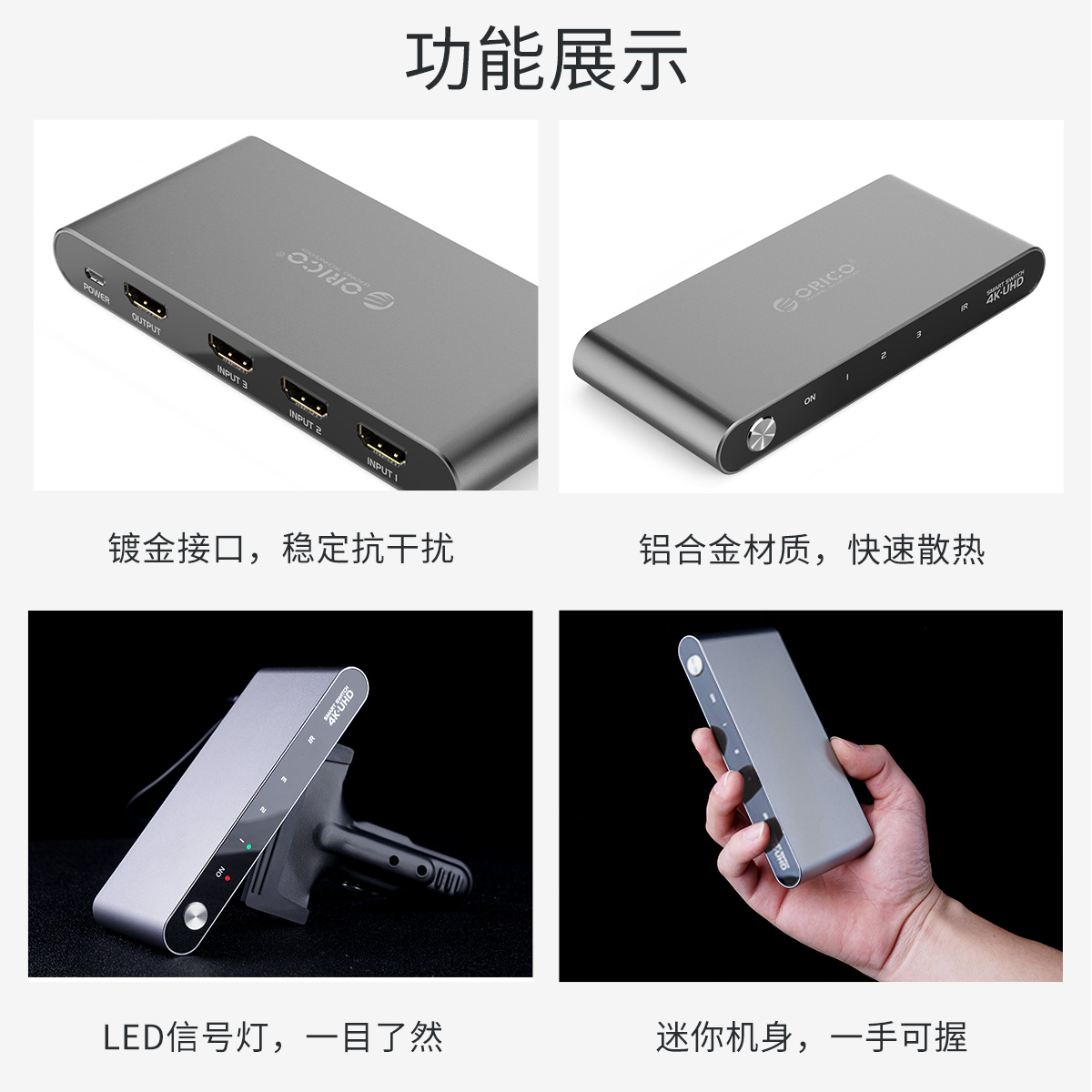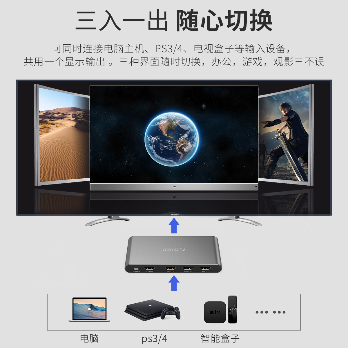 铝合金打造 带红外遥控器 三屏一显 HDMI屏幕高清切换