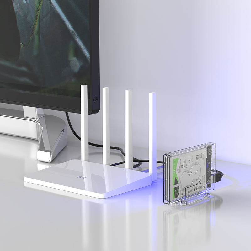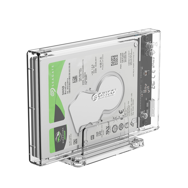 非常不错的一款USB外置硬盘盒,机身全透明设计,将硬盘底部的机械结构一览无余,似乎现在很流行这种透明的设计,小米手机8和9都有类似的设计,果然前沿的设计总是心有灵犀的。硬盘盒做工非常好,亚克力材质很厚实,机身前面的主板处也很细致到位。随机还附赠了一个小的底座,可以将硬盘盒立起来,便于桌面收纳,同时也可以使硬盘盒本身不会与桌面刮擦,非常贴心。