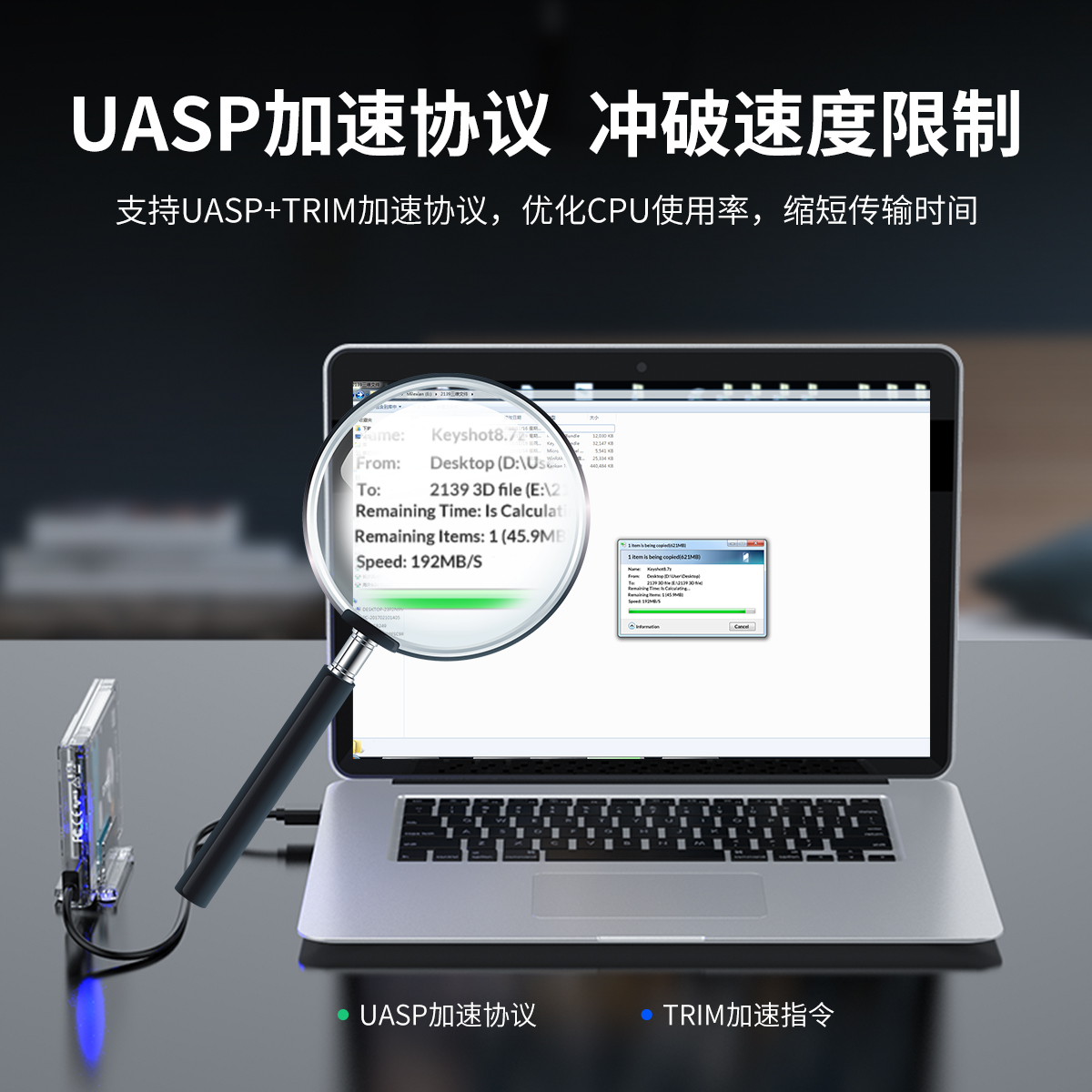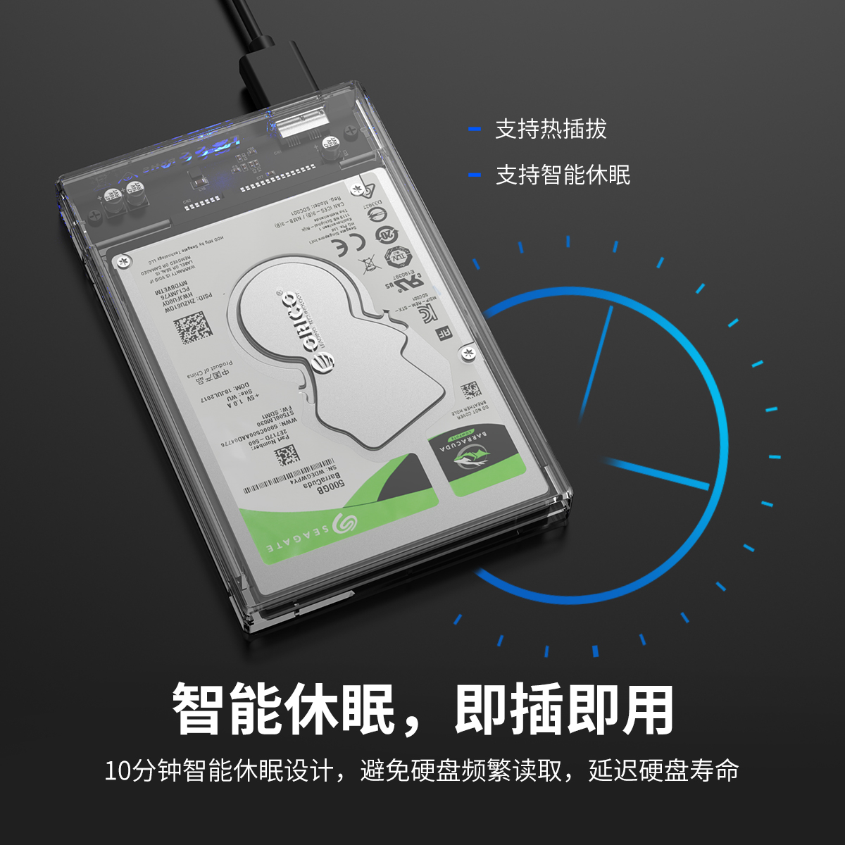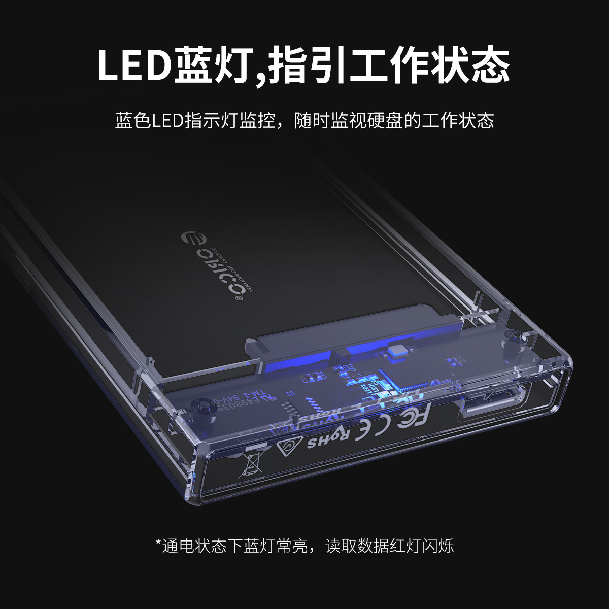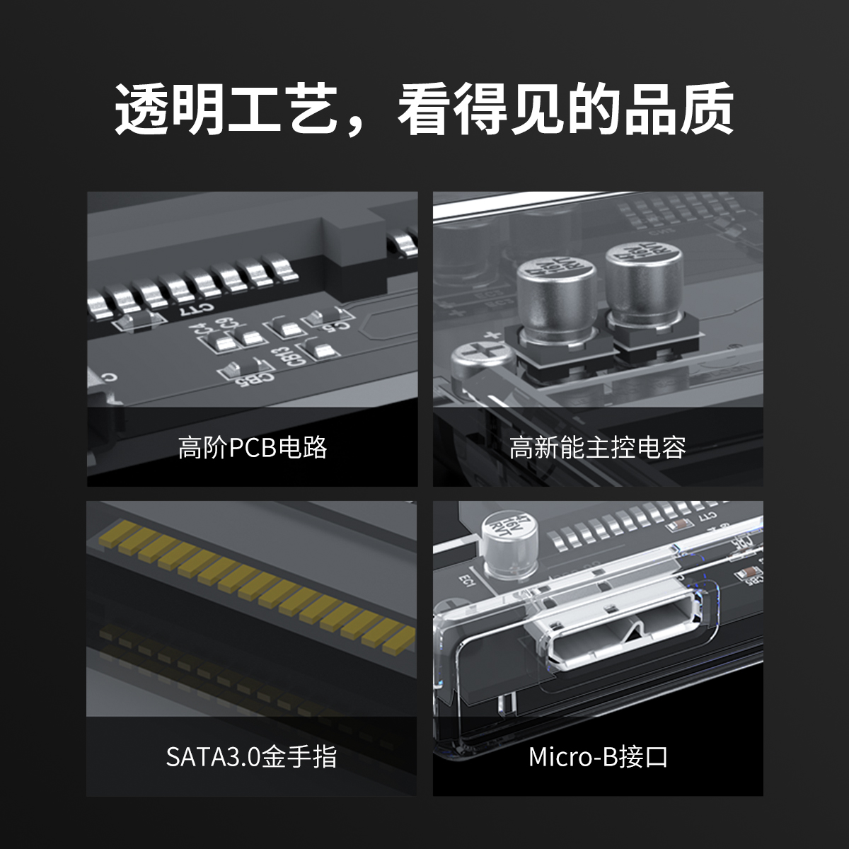 PC透明材质2.5寸SATA USB3.0移动硬盘盒,机身全透视效果